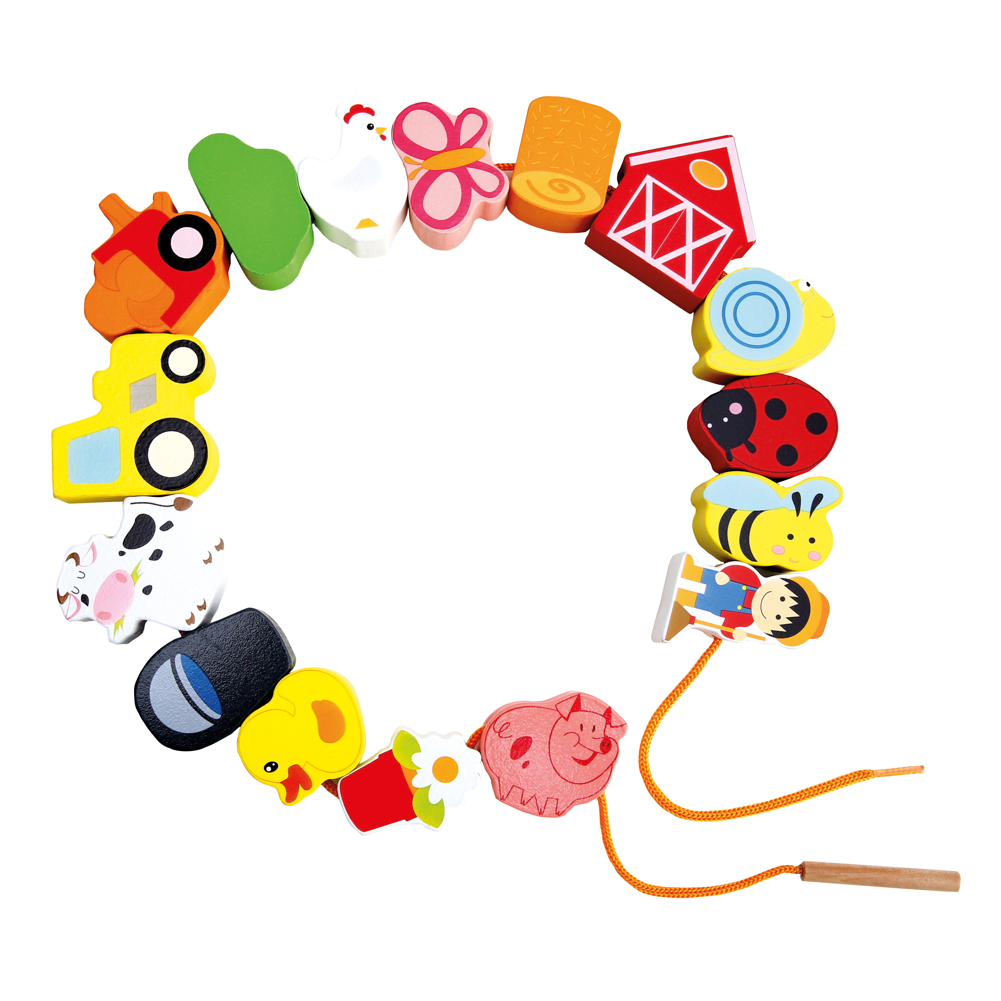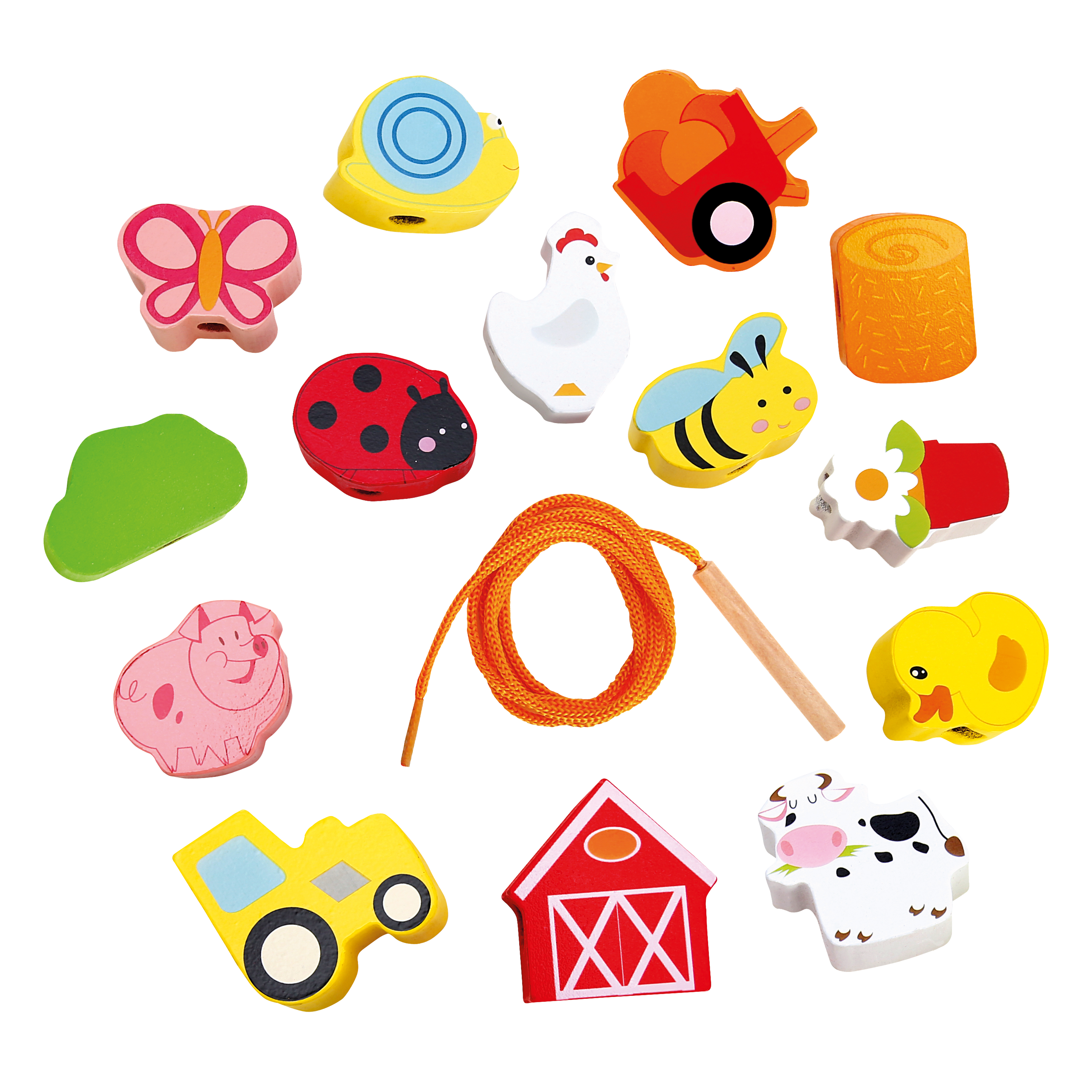 Dieses Fädelspiel ist aus hochwertigem Holz mit schön glatten Oberflächen gefertigt. Es enthält bunte Motive, eine Kordel und eine Holznadel. Die Holznadel lässt sich leicht durch die Löcher einfädeln.
