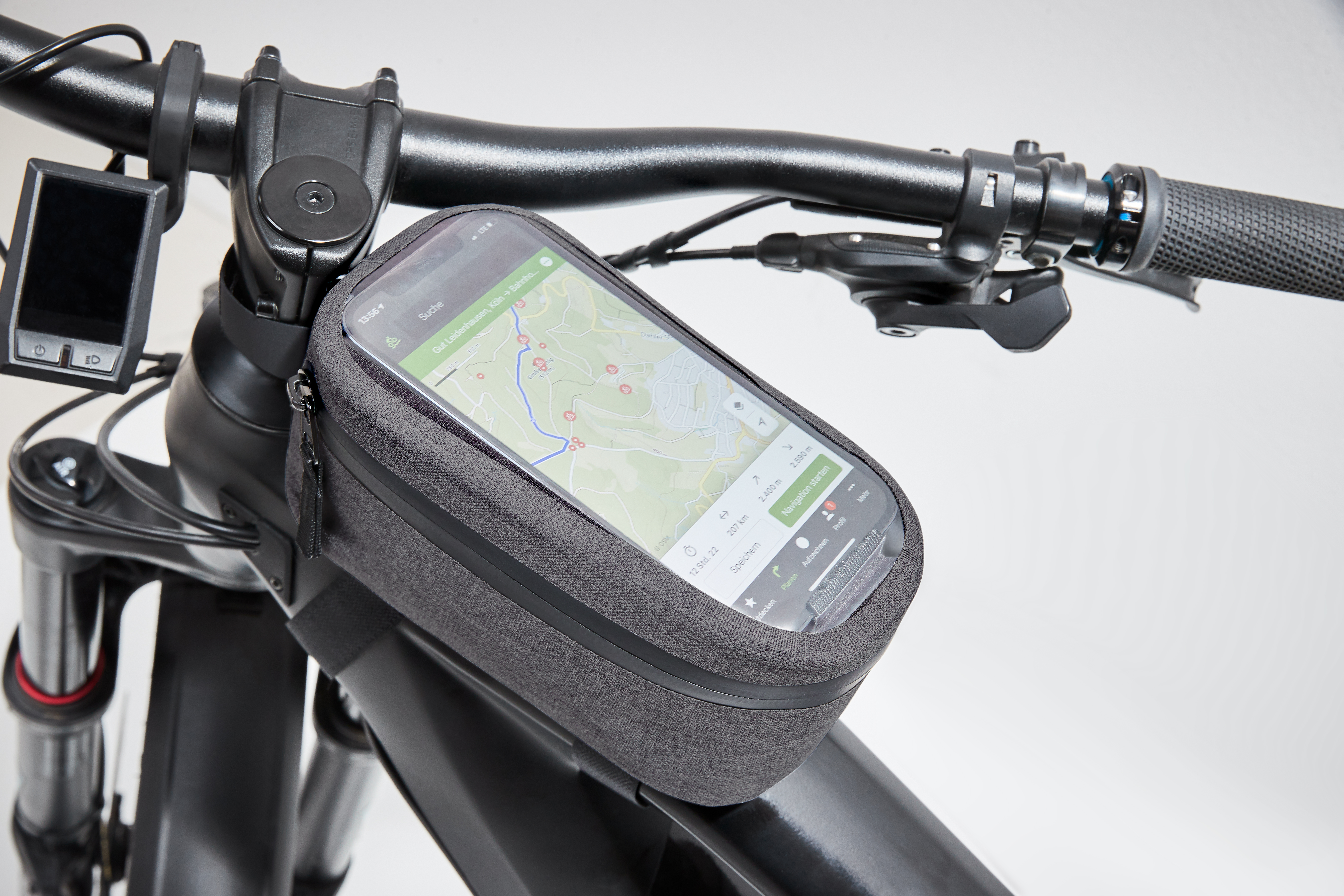 Hauptfach mit variabel einstellbarem Handyfach und transparenter Schutzfolie zum Bedienen des Touchscreens; wasserabweisender Reißverschluss; geschweißte Nähte für zuverlässigen Schutz vor Regenwasser und Nässe; Montage mit individuell anpassbaren, haftstarken Klettverschlüssen, bei Bedarf einzeln abnehmbar; gepolsterter Boden