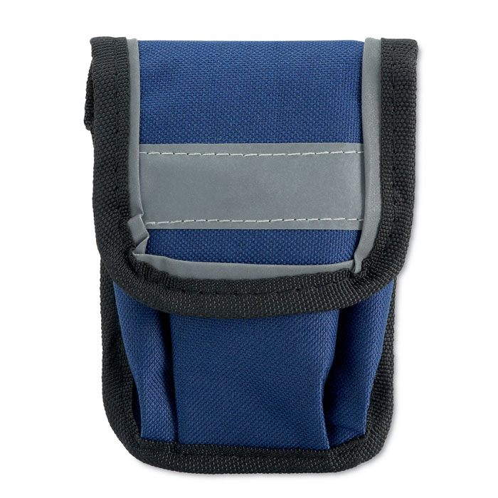 15-teiliges Fahrrad-Reparaturset. Mit Multitool und Reifen-Flickset. Inklusive Tasche mit reflektierenden Streifen.