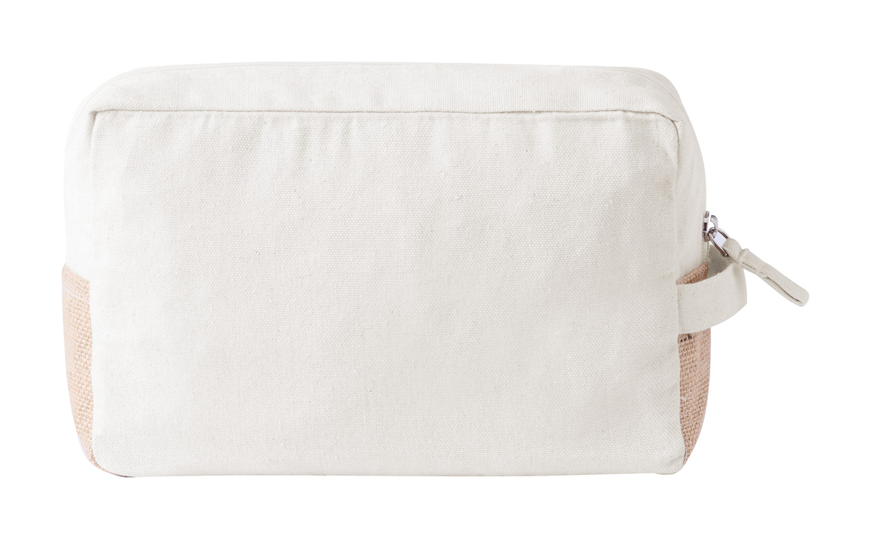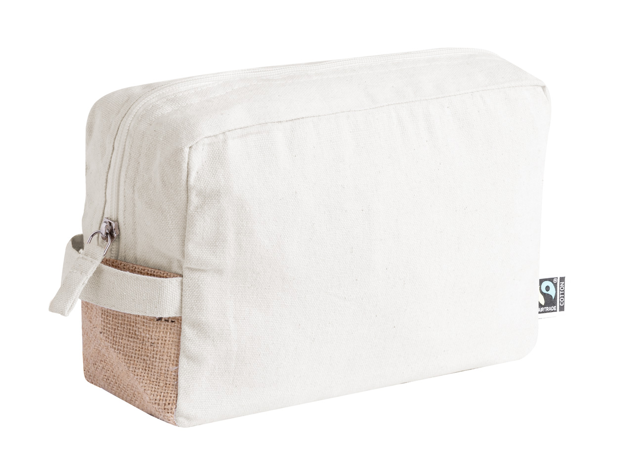 Kosmetiktasche aus Fairtrade-Baumwolle und laminierter Jute mit Reißverschluss und Fairtrade-Label. Material: 100 % Fairtrade-Baumwolle, 180 g / m².