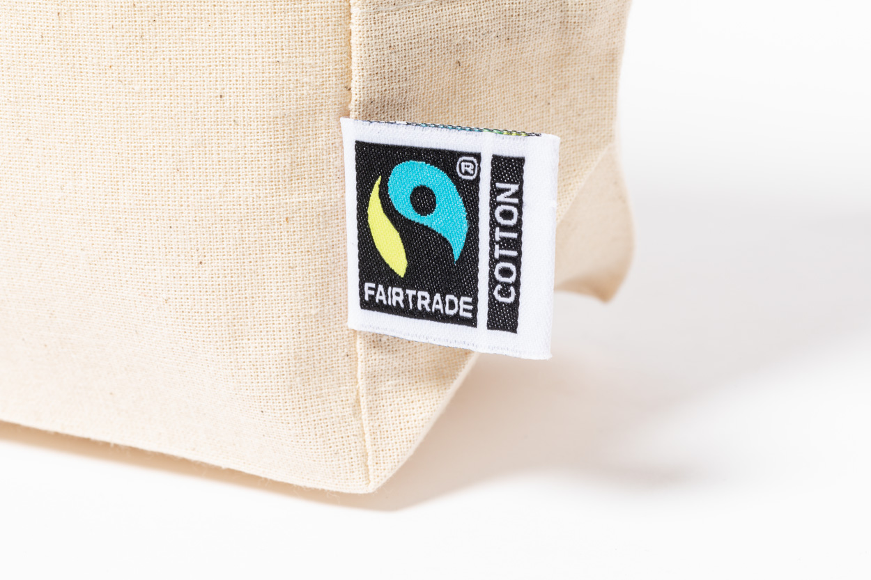 Kosmetiktasche aus Fairtrade Baumwolle mit Reißverschluss und Fairtrade-Label. Material: 100 % Fairtrade-Baumwolle, 180 g / m².