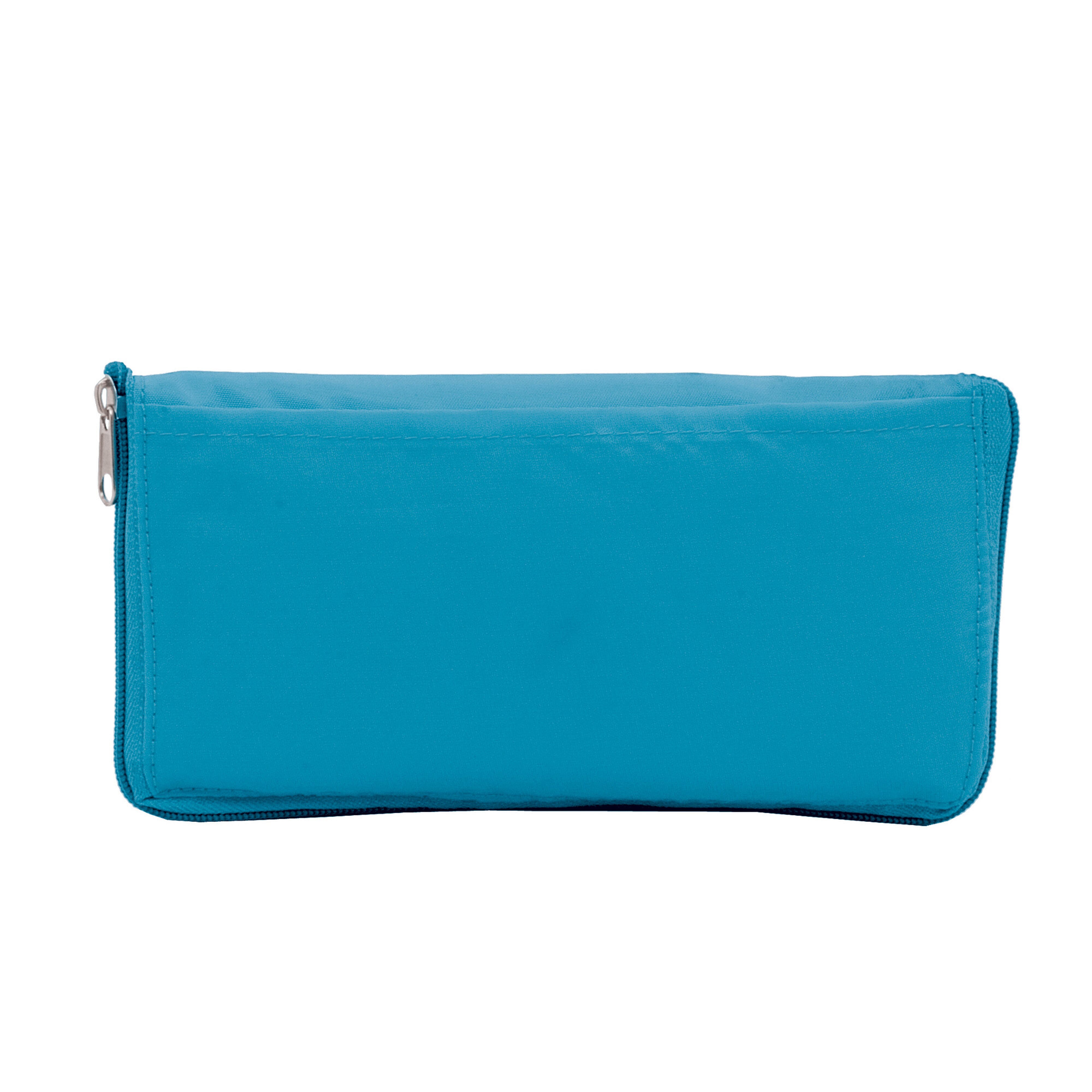 Faltbare, tragbare Kühltasche. Die Tasche kann zu einem kleinen Beutel zusammengefaltet werden. Verschluss mit Reißverschluss. Zusätzliches Fach an der Seite.