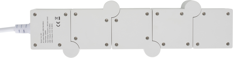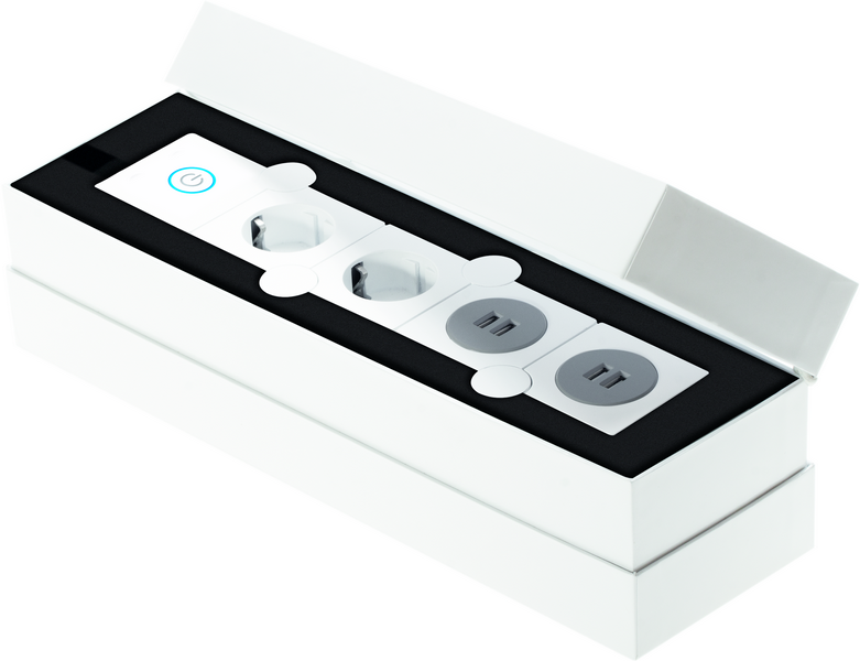 Schön und praktisch zugleich. Verbannen Sie Ihre Steckdosenleisten aus den Fußbodenecken und platzieren Sie dieses Multifunktionsgerät auf Ihrem Schreibtisch. Die Mehrfachsteckdose verfügt über 2 Steckdosen und 4 USB-Anschlüsse. Flexibel auseinanderziehbar. Mit An- und Ausschalter. Input: 110 – 240 V Output: total 4,2 A, max 2,1 A pro USB-Ausgang Material: ABS Farbe: Weiß Maße: 290 x 80 x 40 mm (zusammengeschoben), 410 mm (gestreckt), Kabellänge 1.200 mm Gewicht: 600 g Geschenkbox Werbeanbringung: Unter der Anzeige, 30 x 10 mm (D3 / UV2) Doming auf dem Gelenk Clever, praktisch und 100% Klimaneutral