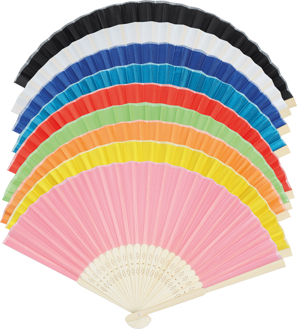 Faltbarer Fächer BAMBOO COOL: Bambusgriff und widerstandsfähige Bambusstäbe mit Bespannung aus recyceltem Polyester