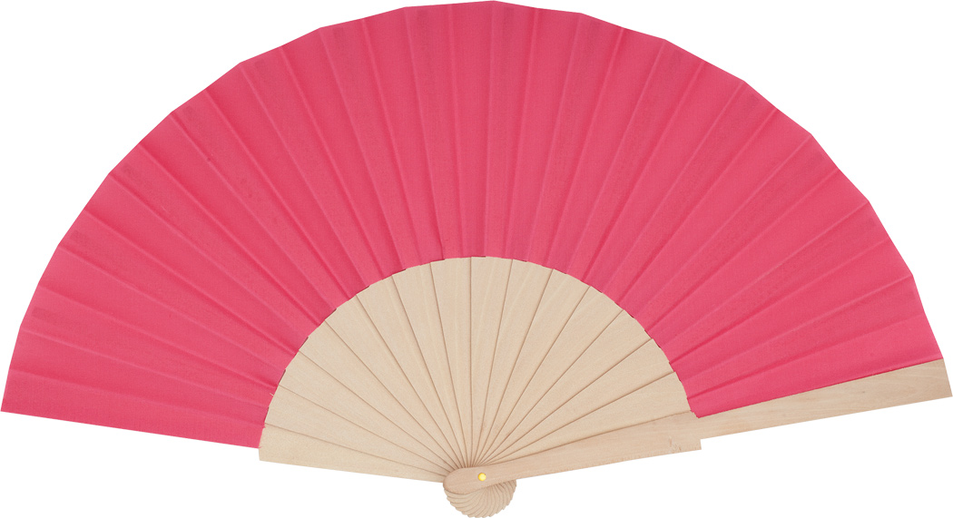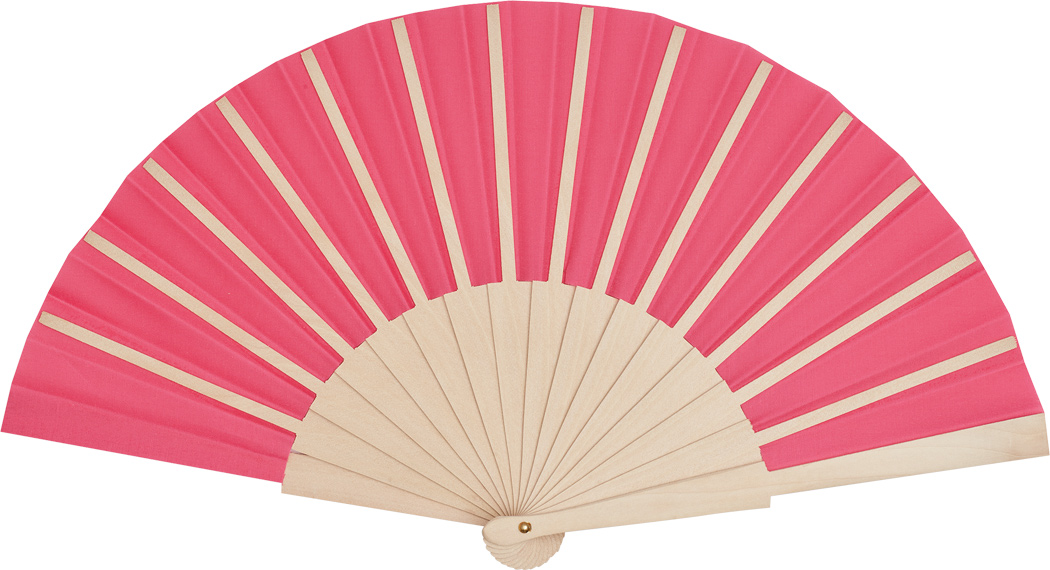 Faltbarer Fächer ECO COOL: stabiler Holzgriff und widerstandsfähige Holzstäbe mit Bespannung aus recyceltem Polyester