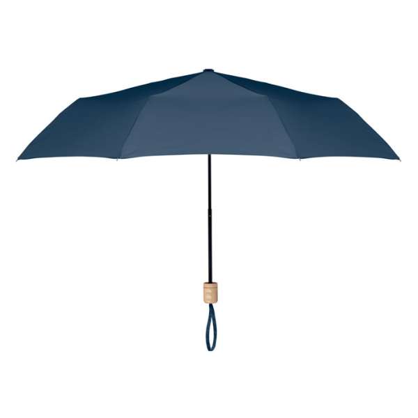 21'' Regenschirm aus 190T RPET Pongee. Stangen und Spitzen aus schwarz überzogenem Metall. Griff aus Holz. 3fach gefaltet. Passende Schirmhülle. Manuelle Öffnung und Schließung.