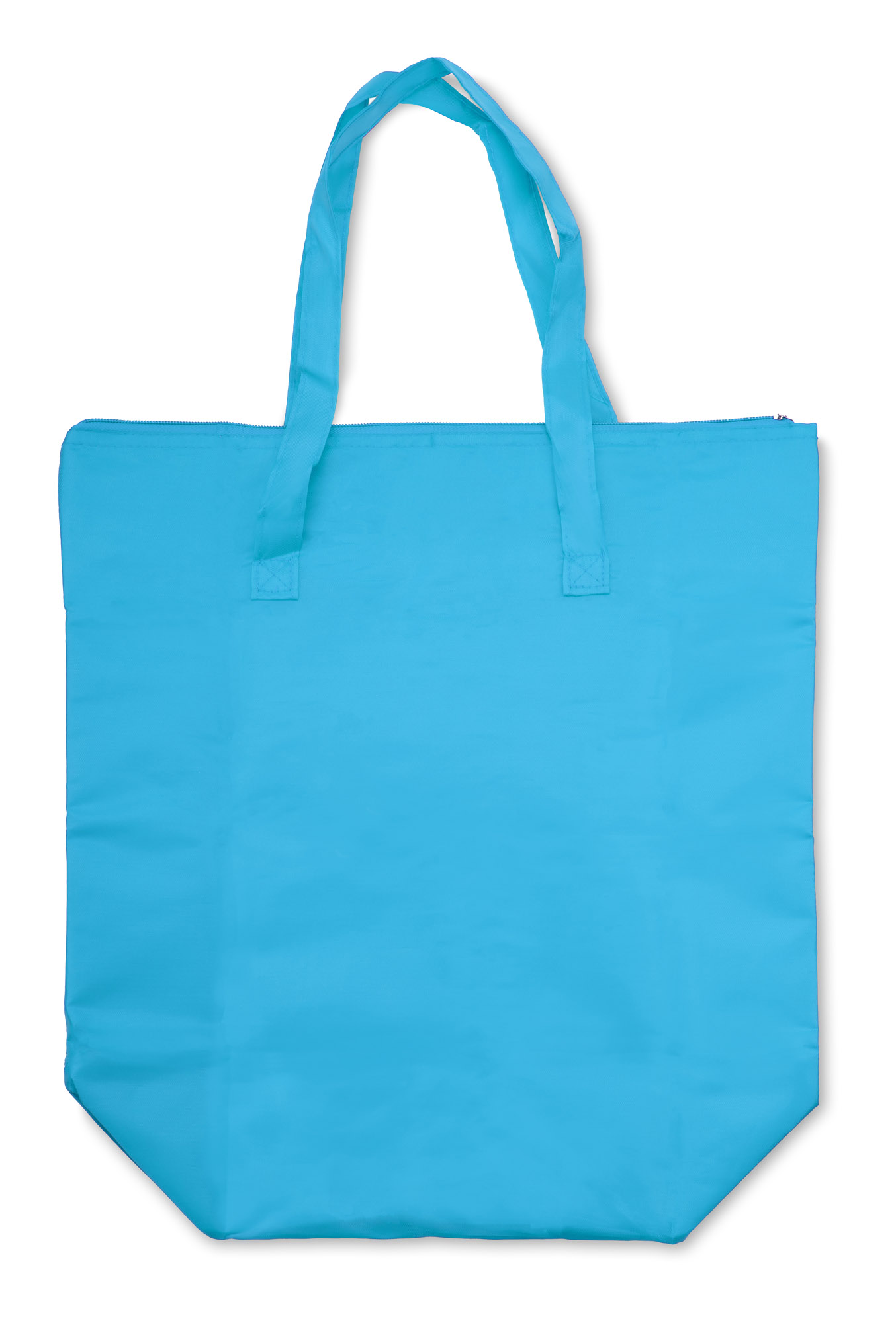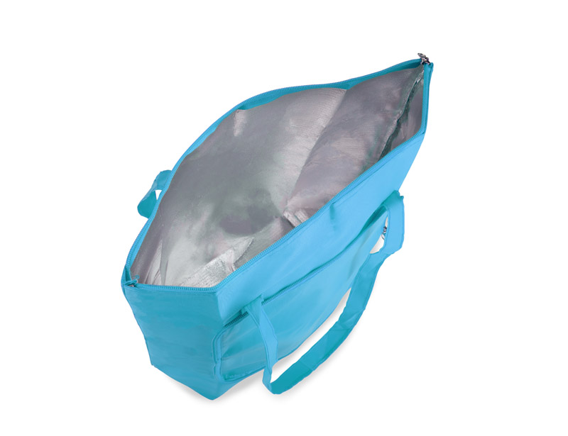PINO ist eine praktische faltbare Tasche mit einer thermoisolierenden Schicht, ideal für Einkäufe, den Strand oder Picknicks. Sie hat lange Henkel, die für angenehmen Tragekomfort sorgen. Dank der Thermoisolierung hält sie die Temperatur der gelagerten Produkte. Sie ist mit einem Reißverschluss versehen und nimmt nach dem Falten wenig Platz ein.