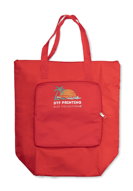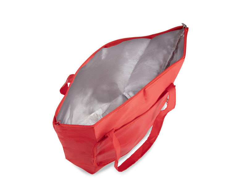 PINO ist eine praktische faltbare Tasche mit einer thermoisolierenden Schicht, ideal für Einkäufe, den Strand oder Picknicks. Sie hat lange Henkel, die für angenehmen Tragekomfort sorgen. Dank der Thermoisolierung hält sie die Temperatur der gelagerten Produkte. Sie ist mit einem Reißverschluss versehen und nimmt nach dem Falten wenig Platz ein.
