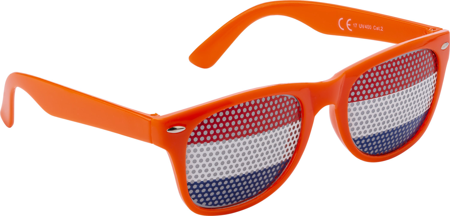 Plexiglas-Partybrille. Länderflaggen auf den Gläsern.