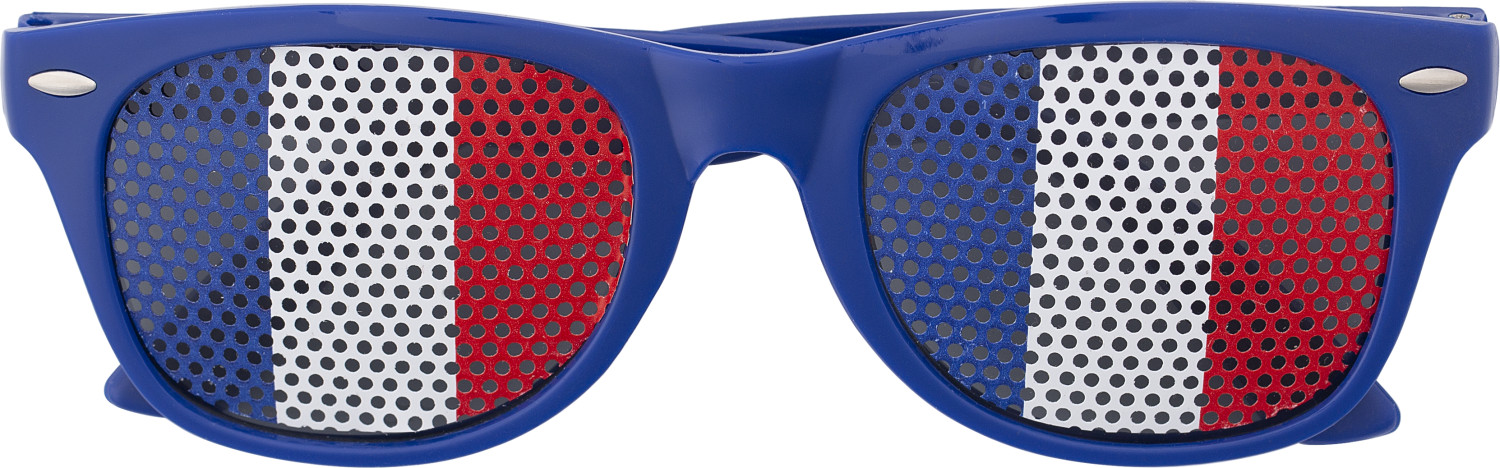 Plexiglas-Partybrille. Länderflaggen auf den Gläsern.