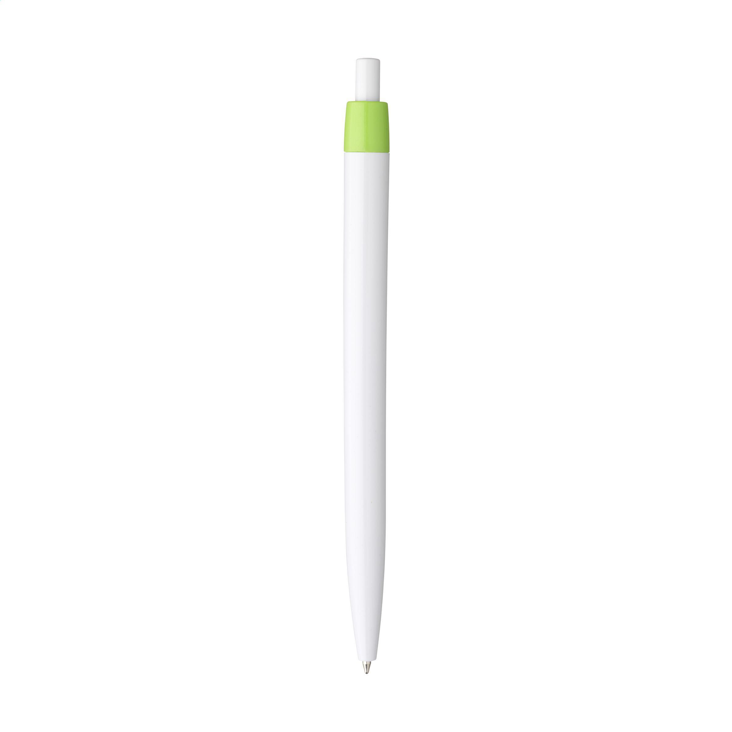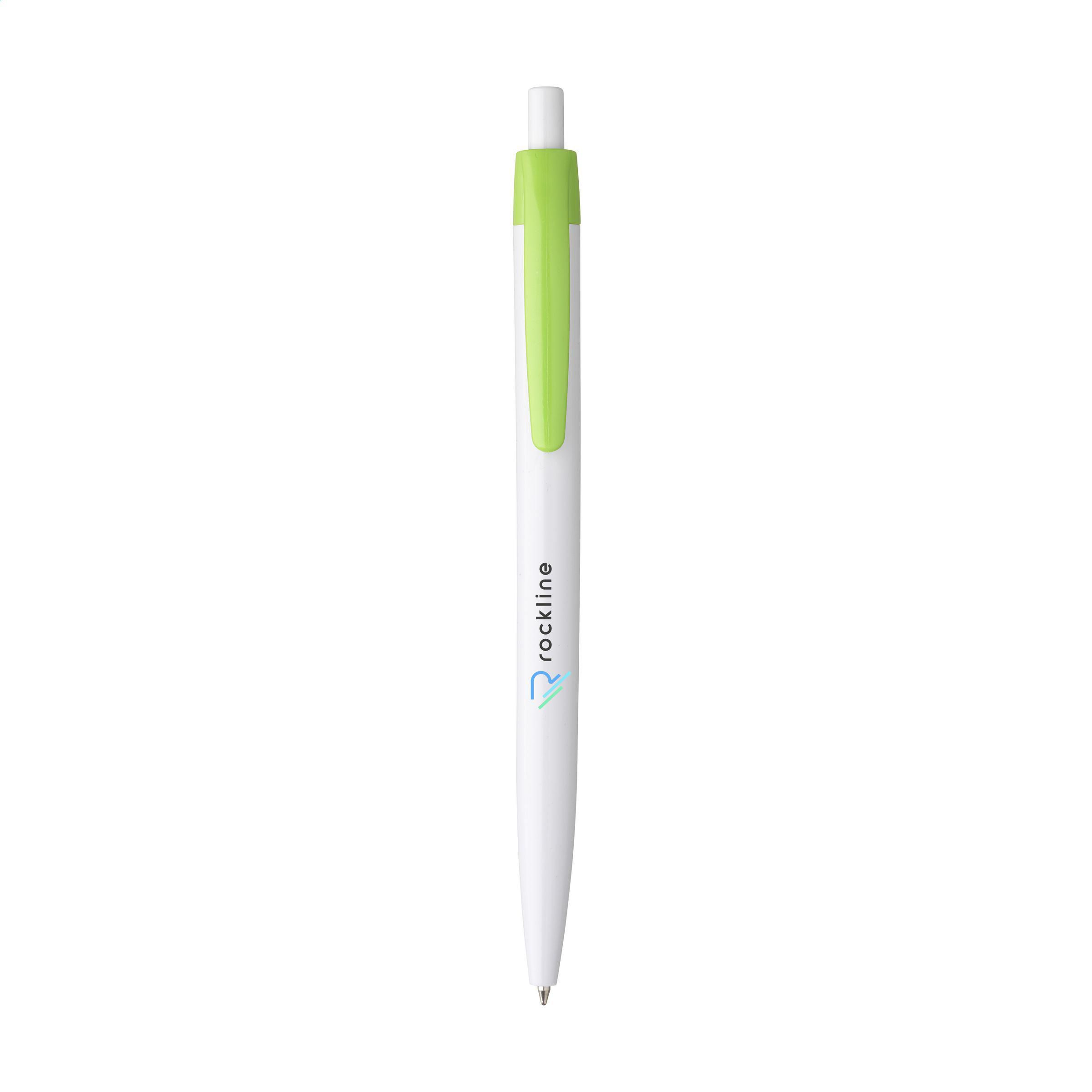 Beschreibung: Blauschreibender Kugelschreiber mit einteiligem Gehäuse. Sehr gut geeignet für einen großzügigen Aufdruck.