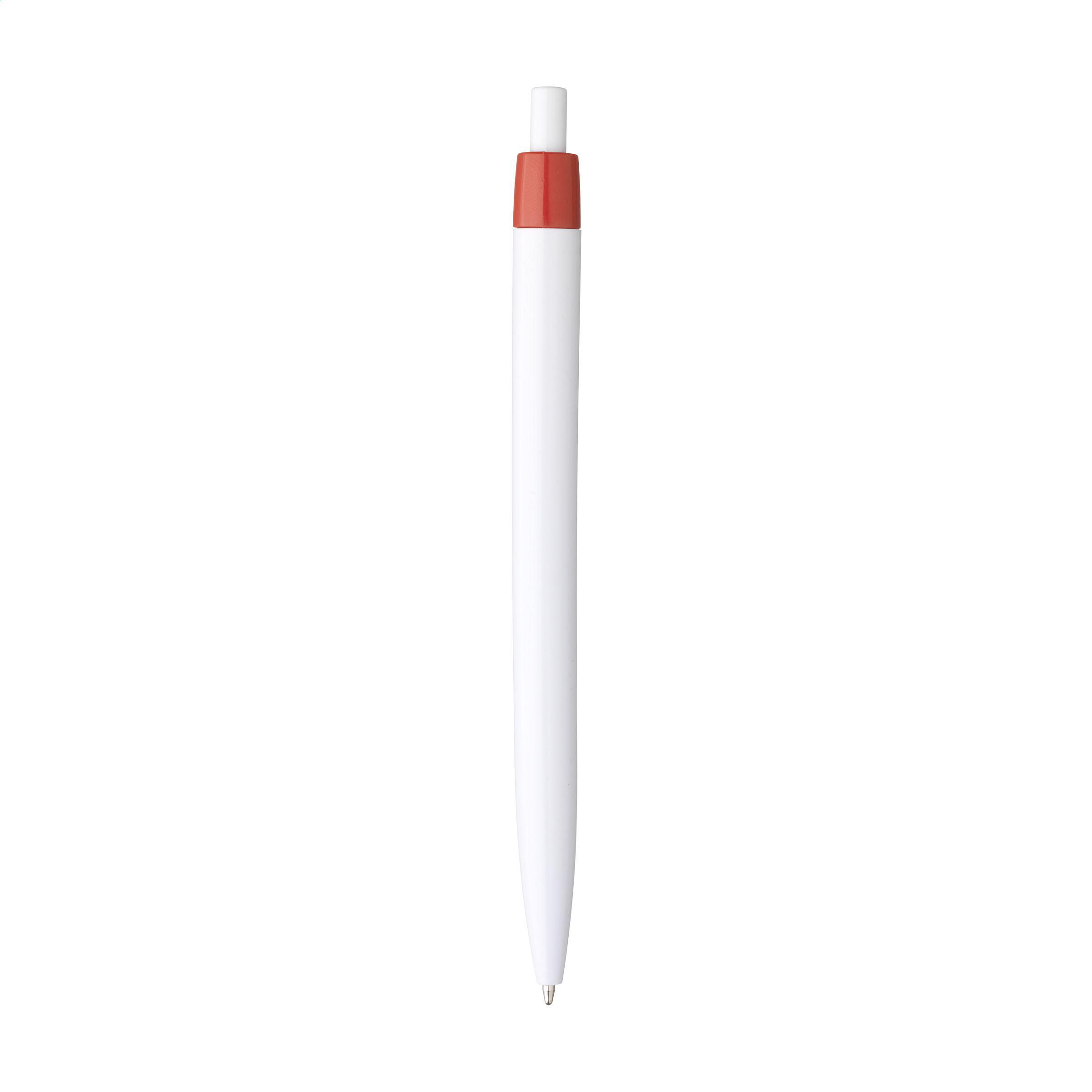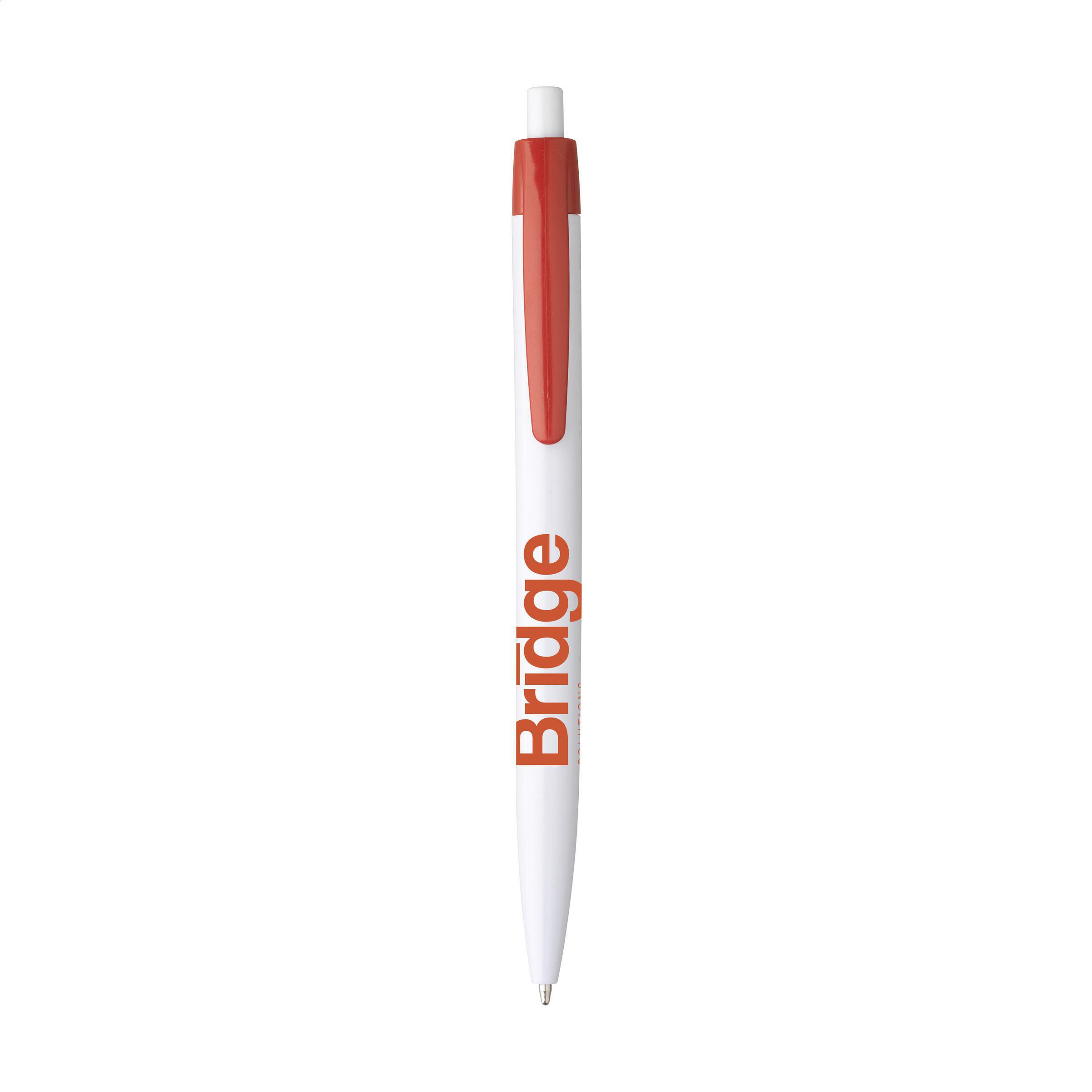 Beschreibung: Blauschreibender Kugelschreiber mit einteiligem Gehäuse. Sehr gut geeignet für einen großzügigen Aufdruck.