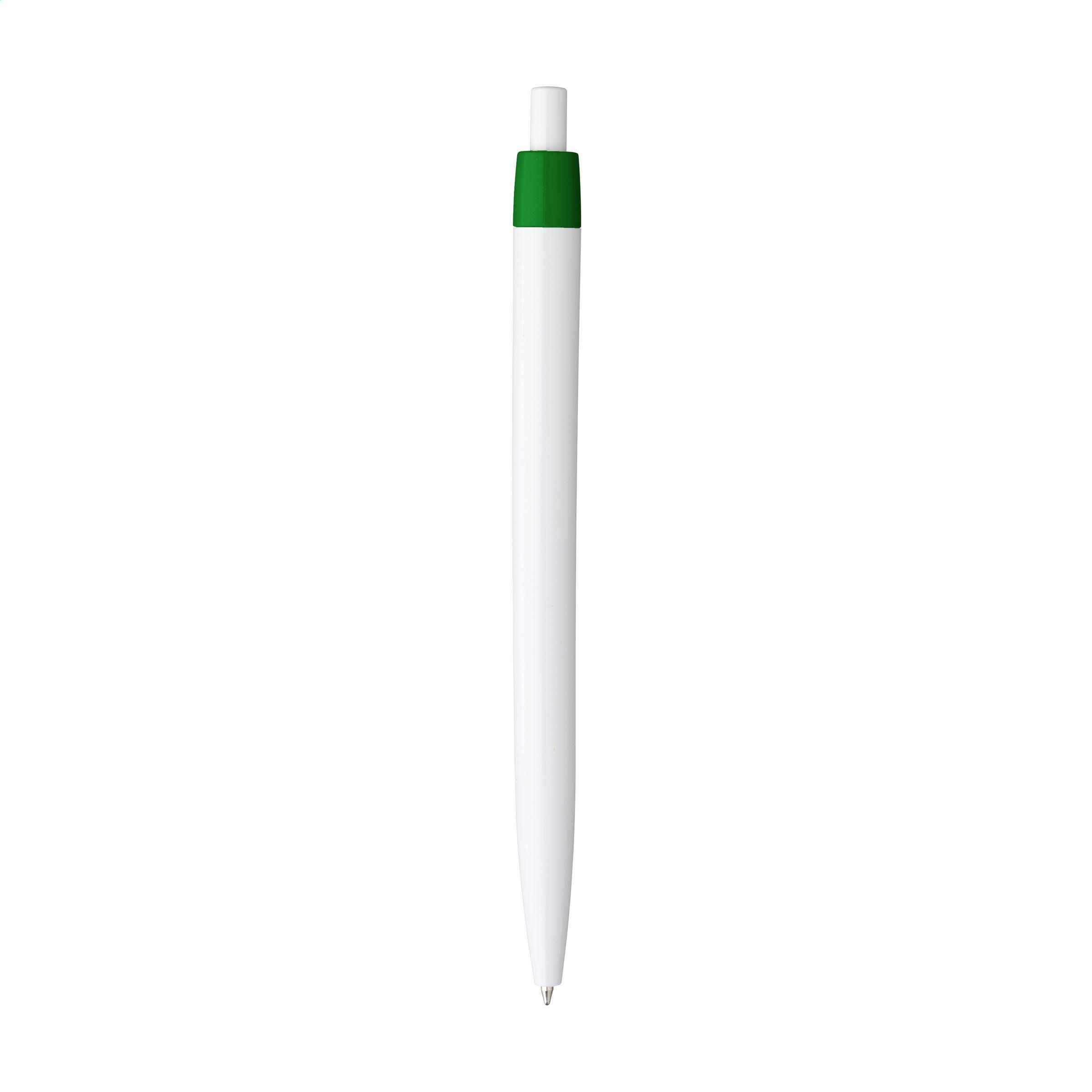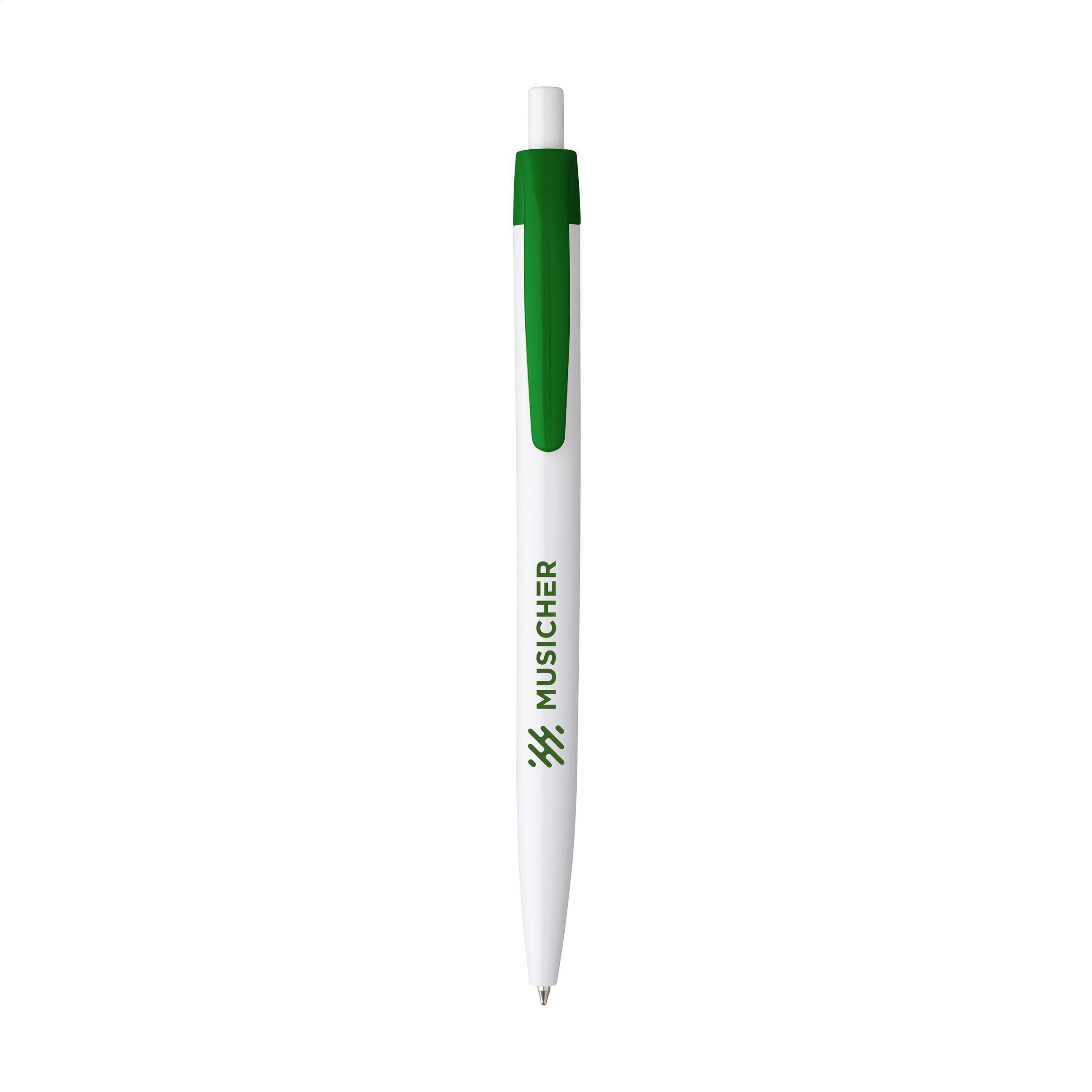 Beschreibung: Blauschreibender Kugelschreiber mit einteiligem Gehäuse. Sehr gut geeignet für einen großzügigen Aufdruck.