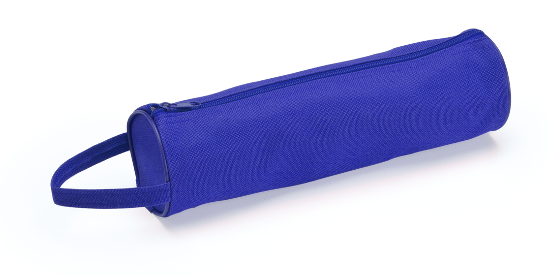 Klassisches zylinderförmiges Etui mit Reißverschluss aus strapazierfähigem 600D Polyester. Mit praktischem Tragegriff und farblich passendem Reißverschluss.