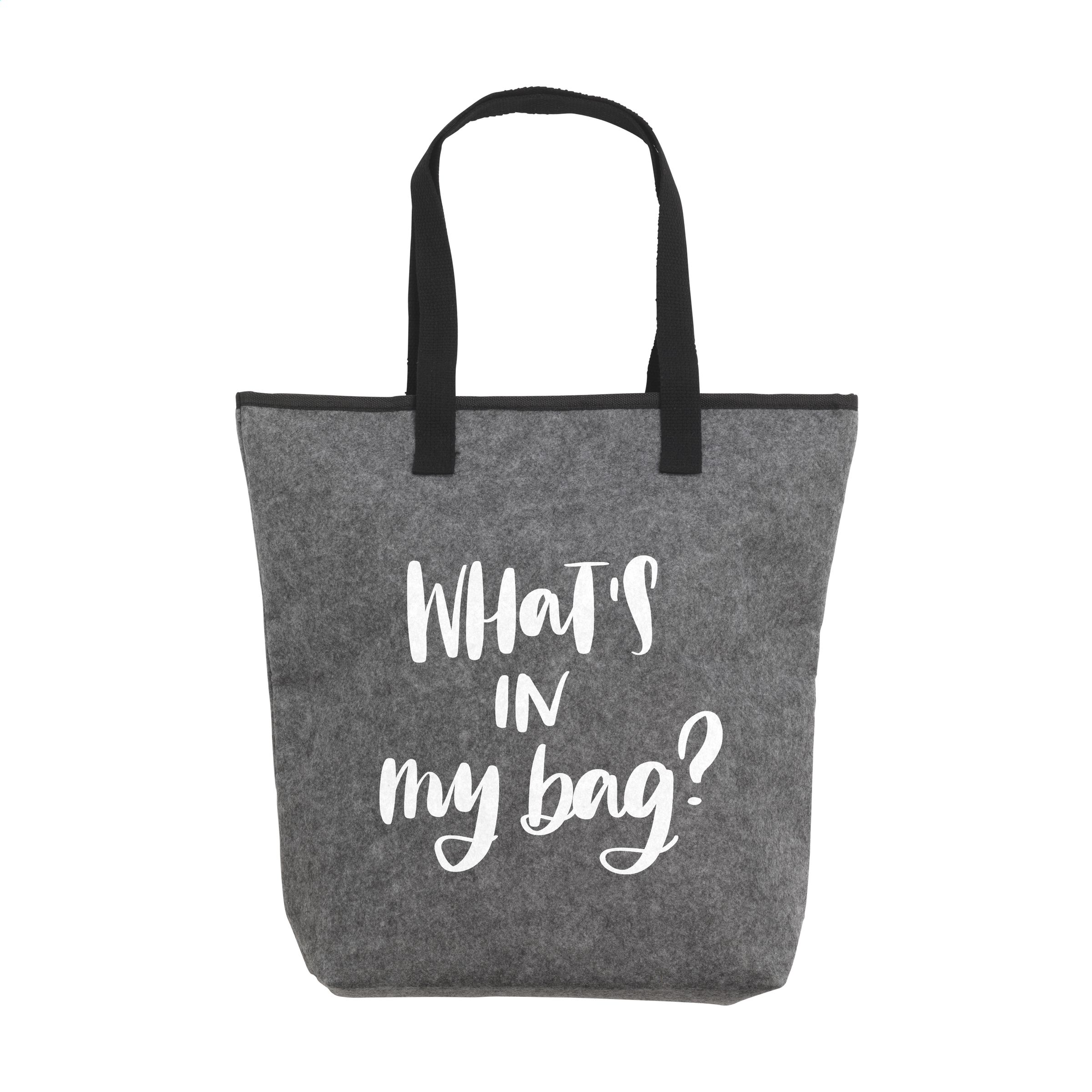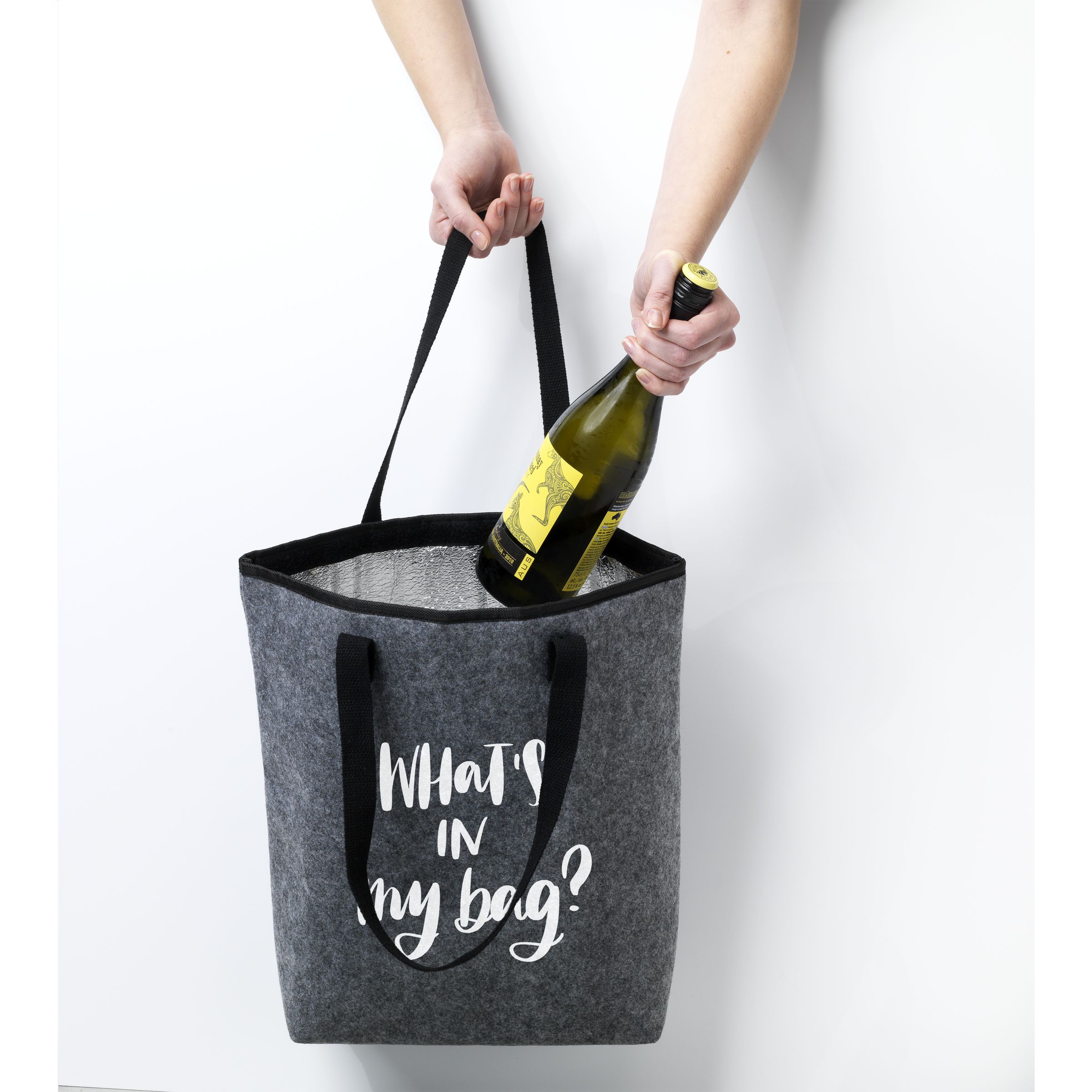 WoW! Großzügige Kühltasche aus RPET Filz. Mit isolierendem Aluminium-Innenraum. Dieser Shopper hat einen praktischen Klettverschluss und Trageschlaufen. Sehr gut geeignet für den Transport von Tiefkühlprodukten. GRS-zertifiziert. Gesamtes recyceltes Material: 75%. Fassungsvermögen ca. 15 Liter.