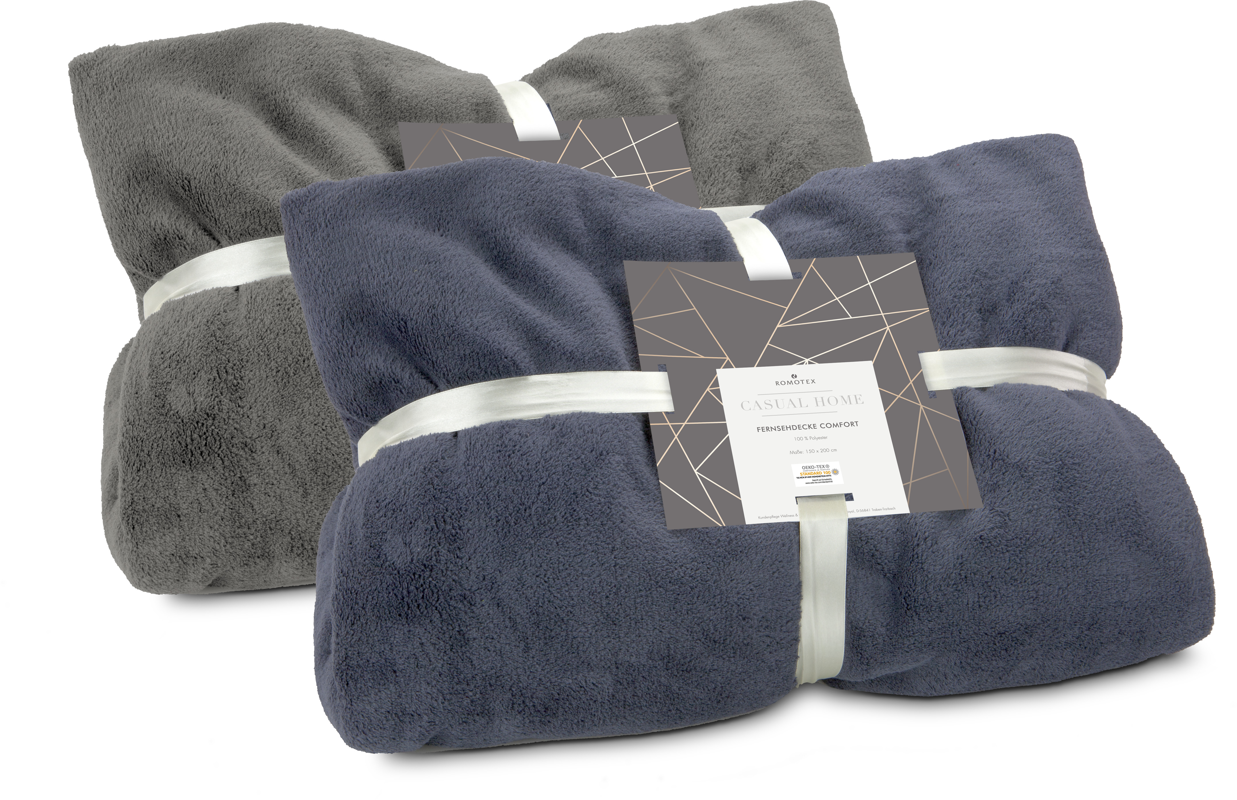 Ein praktischer und kuscheliger Begleiter für den Fernsehabend. Die Fernsehdecke in schieferblau hat Ärmel und eine Fußtasche für besten Komfort. 100% Polyester-Flanell, einzeln mit Satinband und im Polybeutel verpackt. Maße: 150 x 200 cm, Qualität: 100% Polyester-Flanell, 230 g / m² (Zertifiziert nach STANDARD 100 von OEKO-TEX®)
