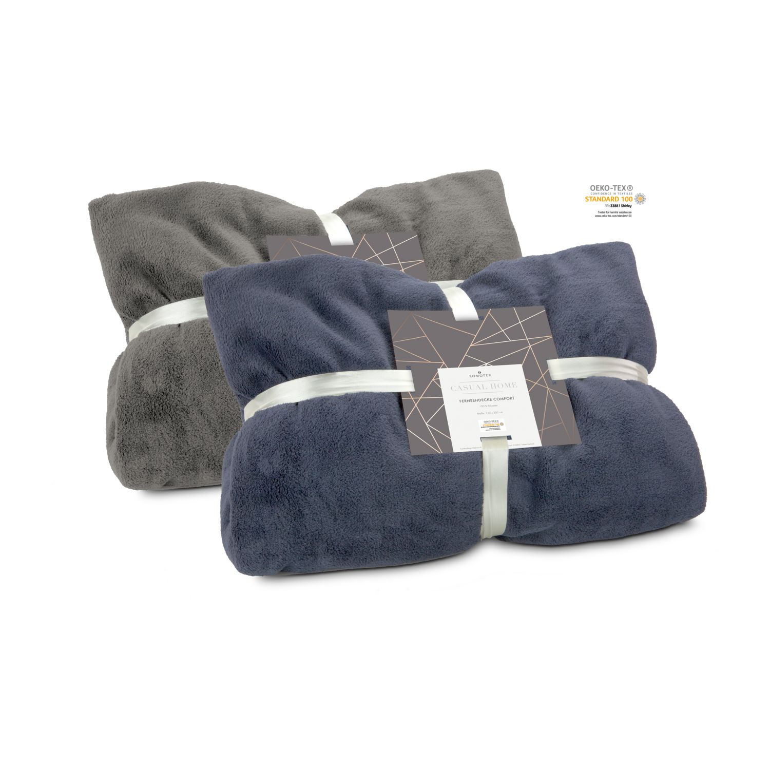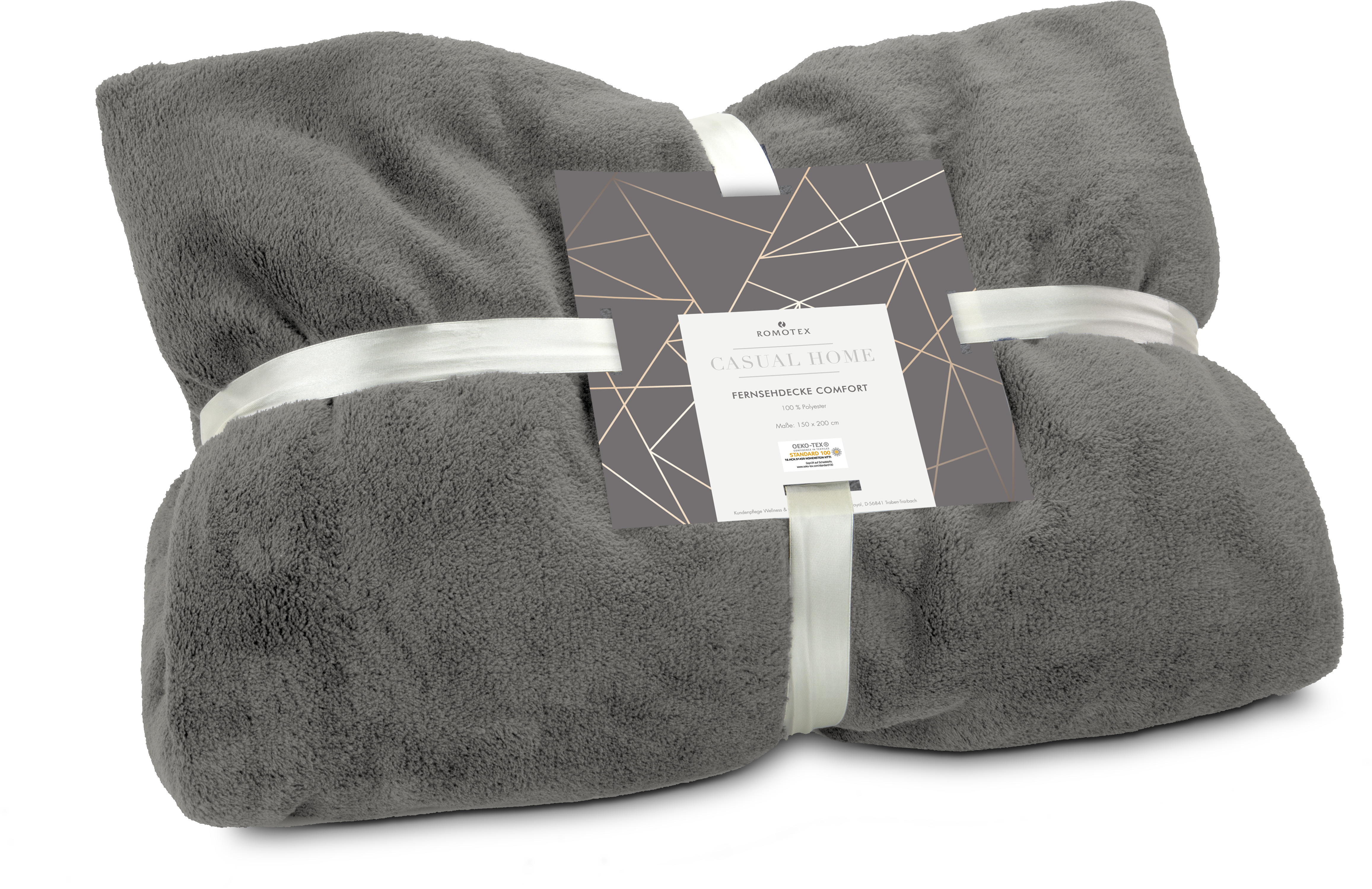 Ein praktischer und kuscheliger Begleiter für den Fernsehabend. Die Fernsehdecke in schieferblau hat Ärmel und eine Fußtasche für besten Komfort. 100% Polyester-Flanell, einzeln mit Satinband und im Polybeutel verpackt. Maße: 150 x 200 cm, Qualität: 100% Polyester-Flanell, 230 g / m² (Zertifiziert nach STANDARD 100 von OEKO-TEX®)