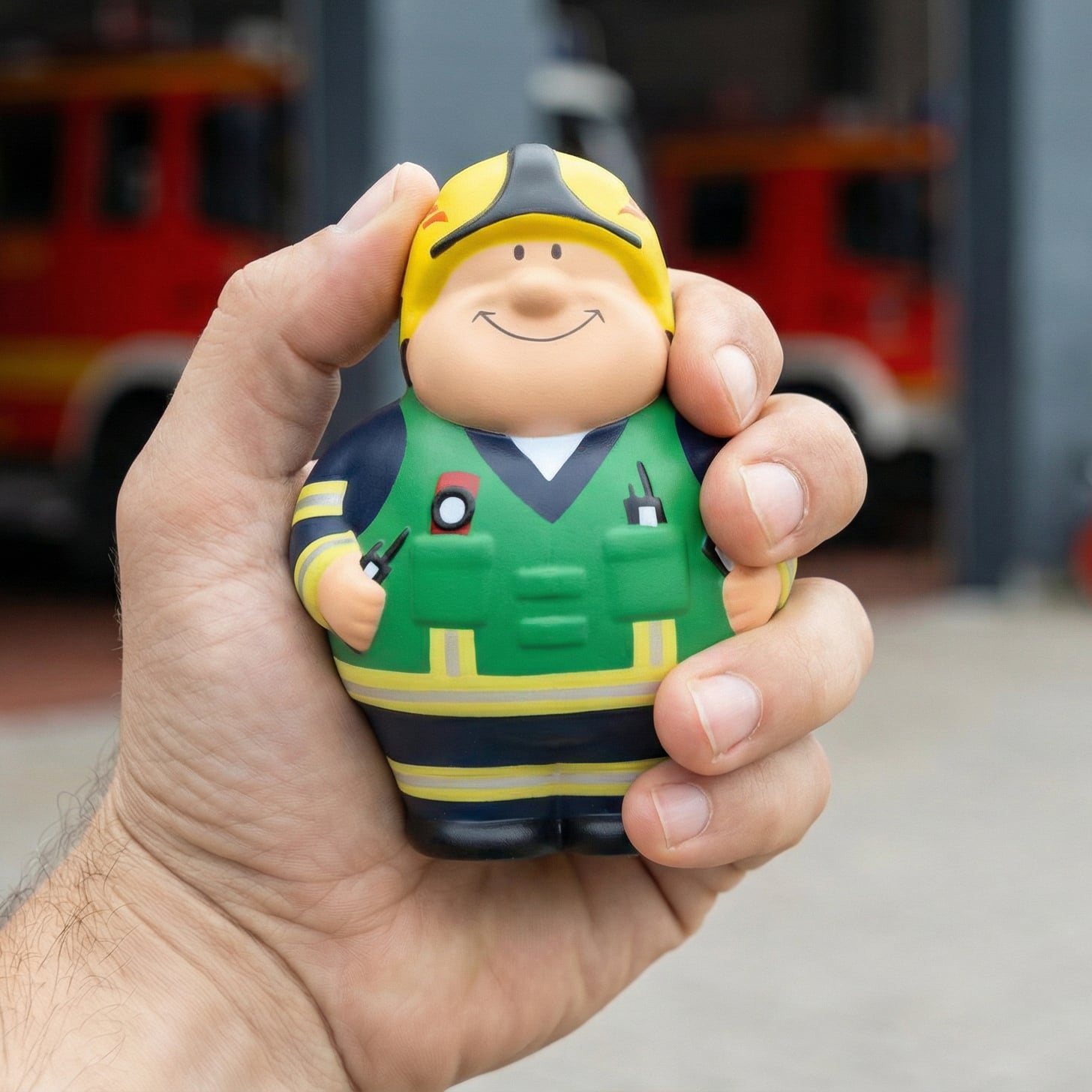 Der Feuer Bert® 2.0 kommt im modernen Outfit daher und ist für jede Lage bestens gerüstet – ganz gleich ob im Büro, im Einsatzfahrzeug oder auf dem Schreibtisch im Feuerwehrstützpunkt. Das Besondere: Feuer Bert® 2.0 ist in verschiedenen Farb-Varianten erhältlich – jede mit einer eigenen farbigen Weste, die den jeweiligen Aufgabenbereich symbolisiert: ? Gelb – Einsatzleiter ? Rot – Zugführer ? Blau – Gruppenführer ⚫ Dunkelblau – die moderne Variante: Feuer Bert® 2.0 ? Grün - Pressesprecher Egal in welcher Rolle: Feuer Bert® 2.0 entfacht das Feuer der Begeisterung und sorgt für entspannte Momente – selbst bei hitzigen Einsätzen. Alle Varianten sind unter einer Artikelnummer bestellbar, einfach Wunschfarbe auswählen und losknautschen!