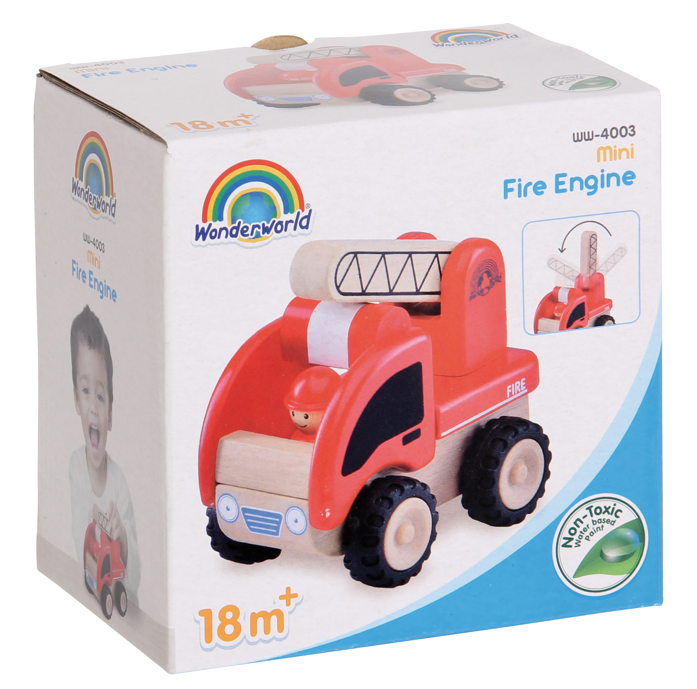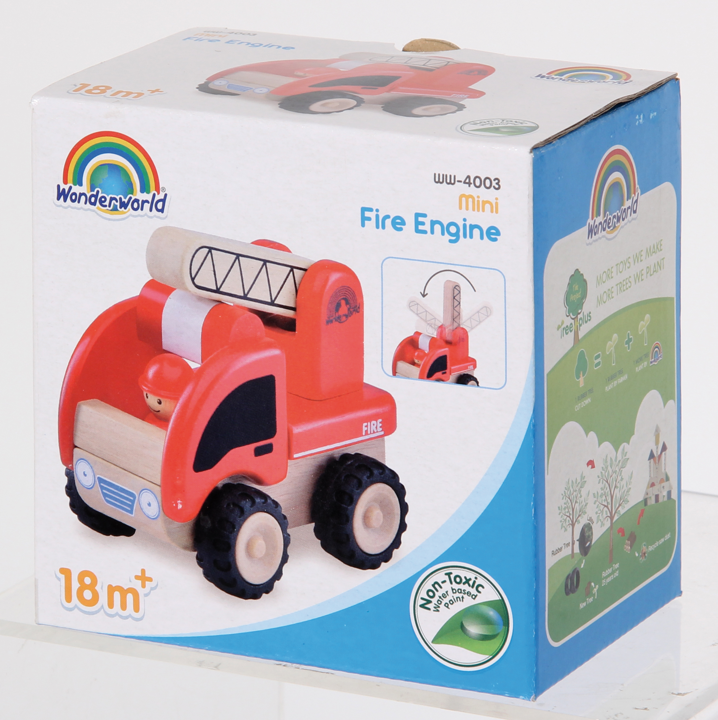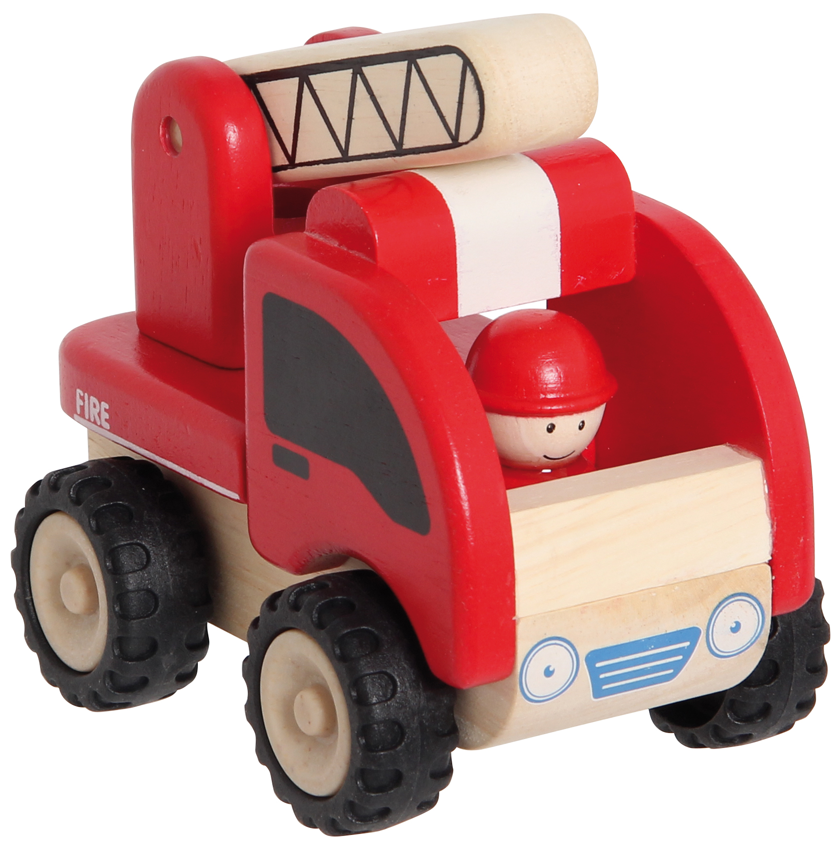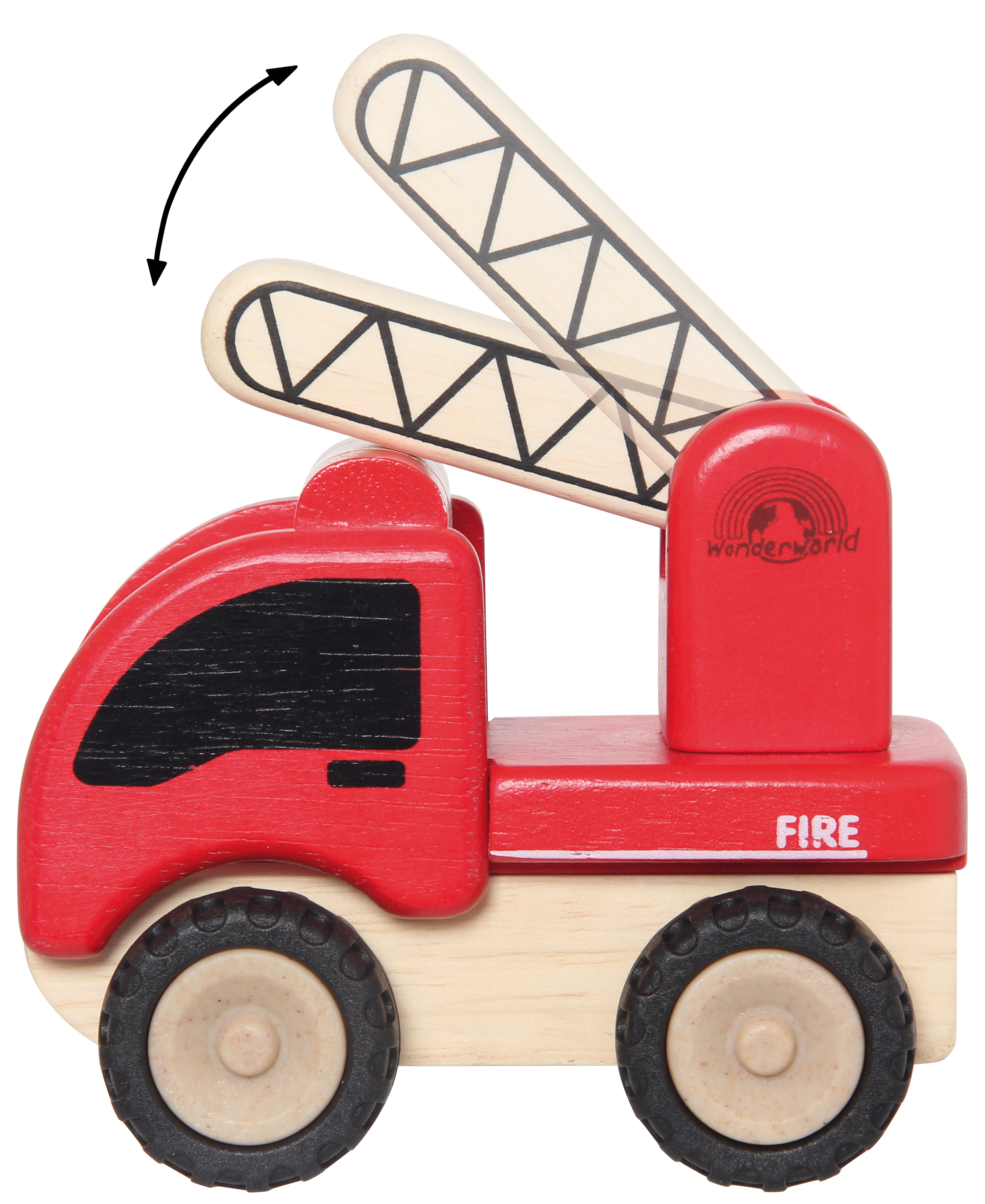 Fröhliches Fahrzeug aus Massivholz mit beweglicher Feuerleiter.