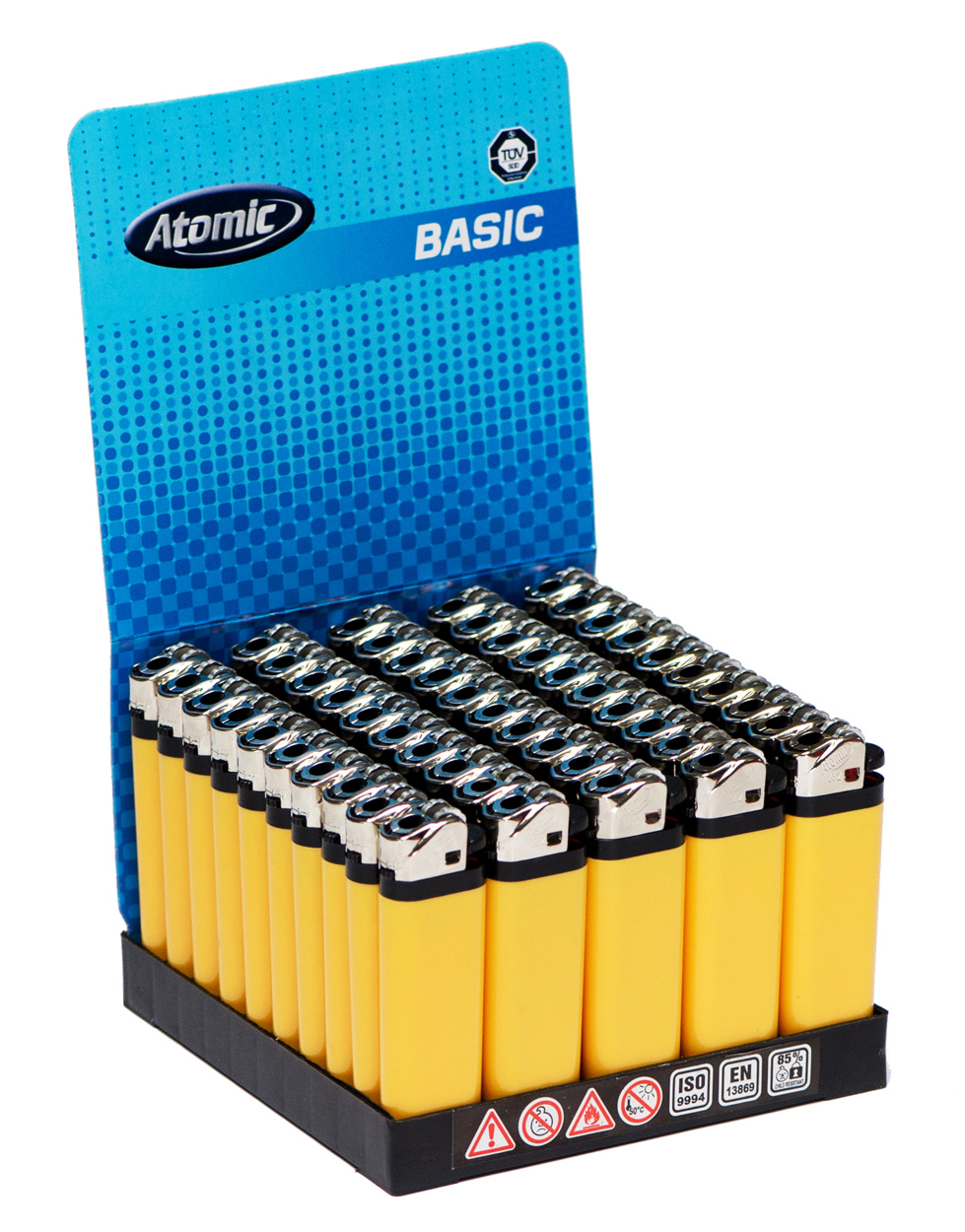 Einweg-Feuerzeug aus Kunststoff mit Feuerstein. Mit Kindersicherung. Wird mit Gas geliefert, nicht nachfüllbar. Nur in vollen Exportkarton-Mengen erhältlich (Vielfaches von 1.000 Stück)!