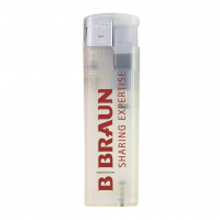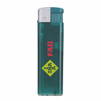 Elektronik Feuerzeug in diversen Farben, nachfüllbar. Die Flammengröße lässt sich stufenlos verstellen. Ihre Werbung drucken wir für Rechtshänder lesbar auf eine Seite.