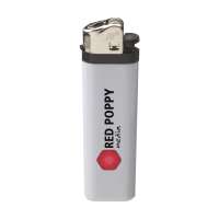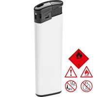 Schönes Elektronikfeuerzeug (nachfüllbar) aus Kunststoff. Selbstverständlich verfügt dieses Modell über die vorgeschriebene Kindersicherung. Ihre Werbung drucken wir auf eine Seite des Feuerzeuges.
