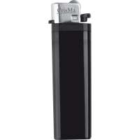 Nachfüllbares Elektronikfeuerzeug aus Kunststoff. Selbstverständlich verfügt dieses Modell über die vorgeschriebene Kindersicherung. Ihre Werbung drucken wir auf eine Seite des Feuerzeuges.