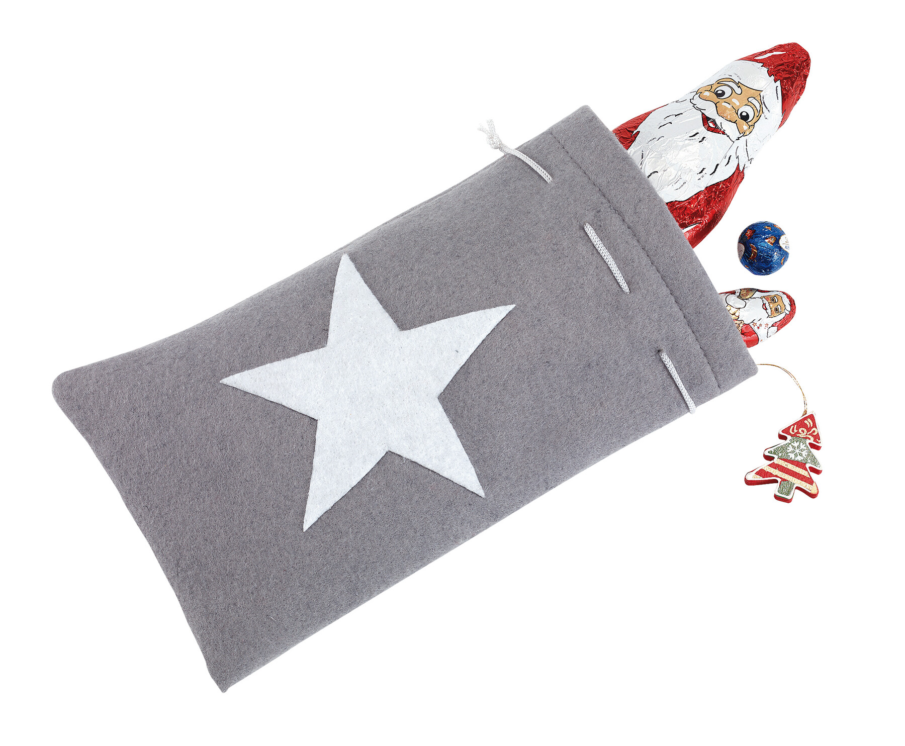 Filz-Weihnachtsbeutel WHITE SHINE: mit Zuziehband