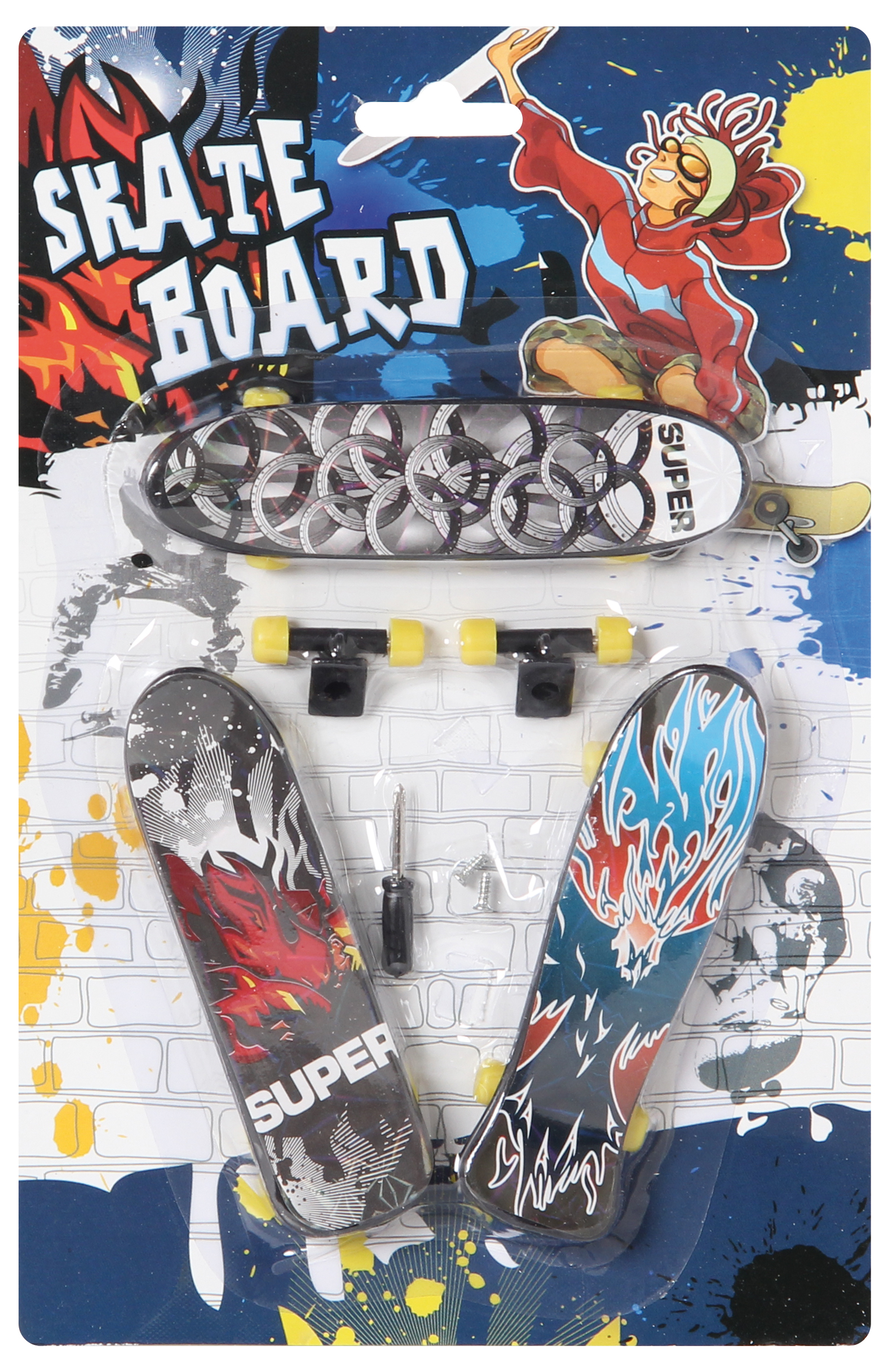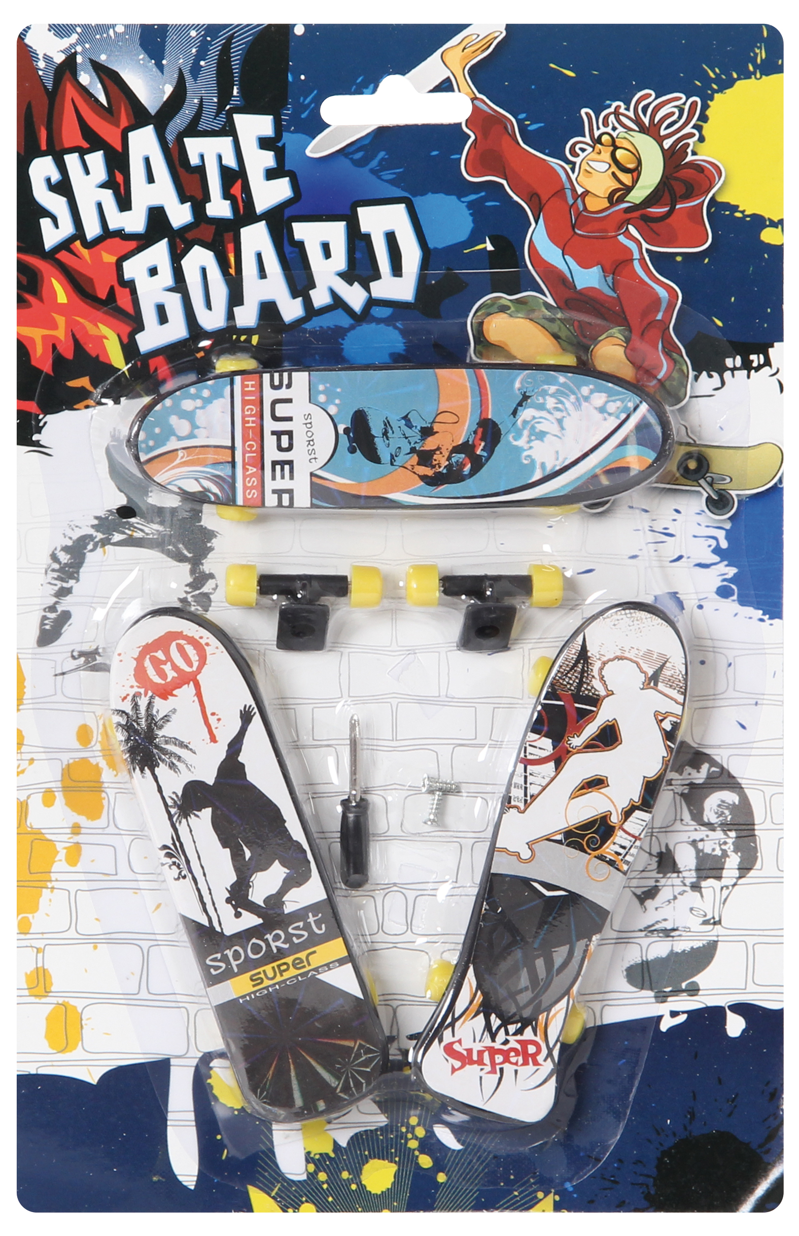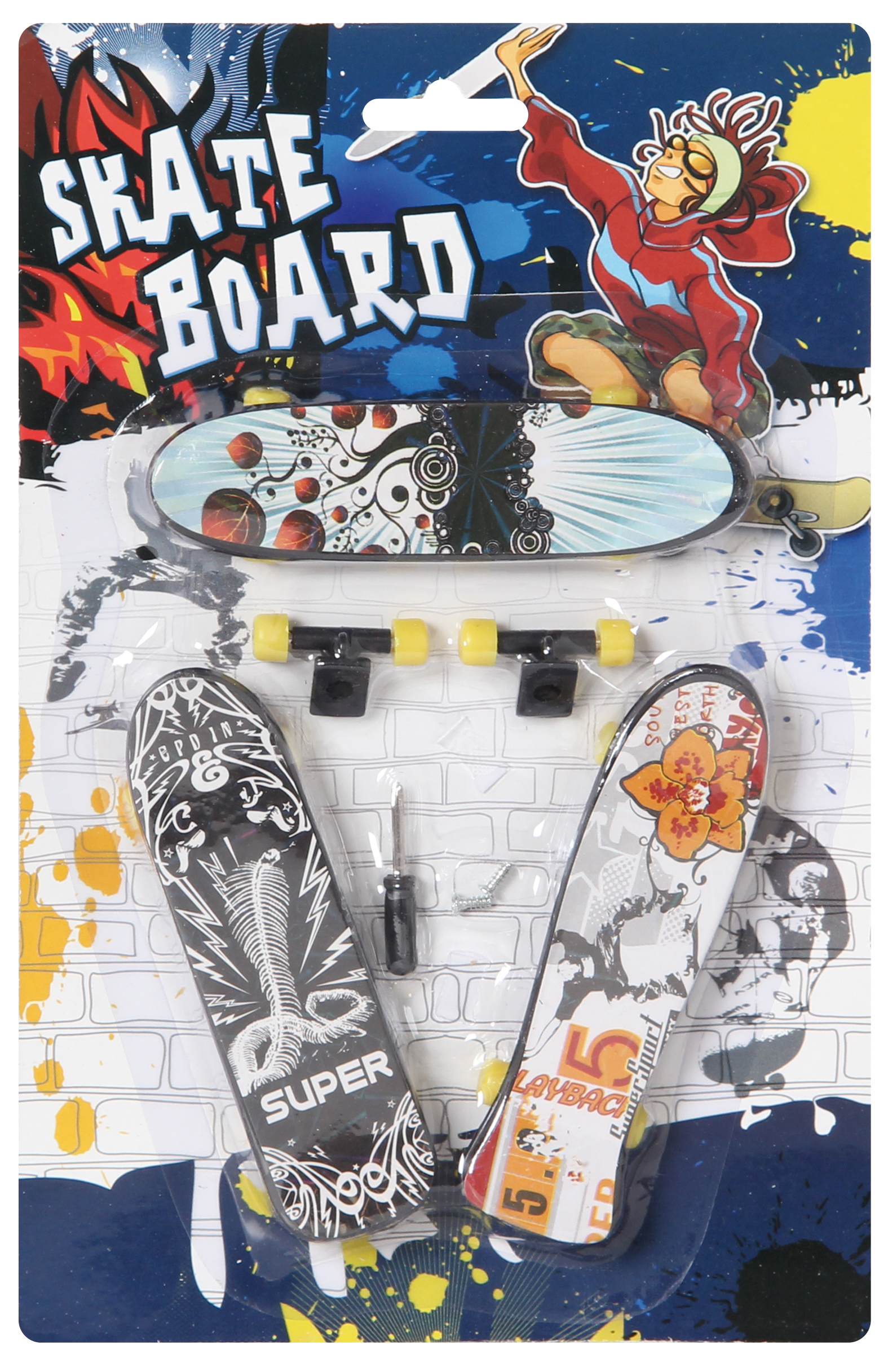 Diese Boards bringen viel Spaß und fördern außerdem die Beweglichkeit der Finger. Jede Packung enthält Boards in 3 verschiedenen Formen, jeweils in coolen Designs, mit Mini-Schraubendreher zum Verstellen der Räder. Verschiedene Designs sortiert.