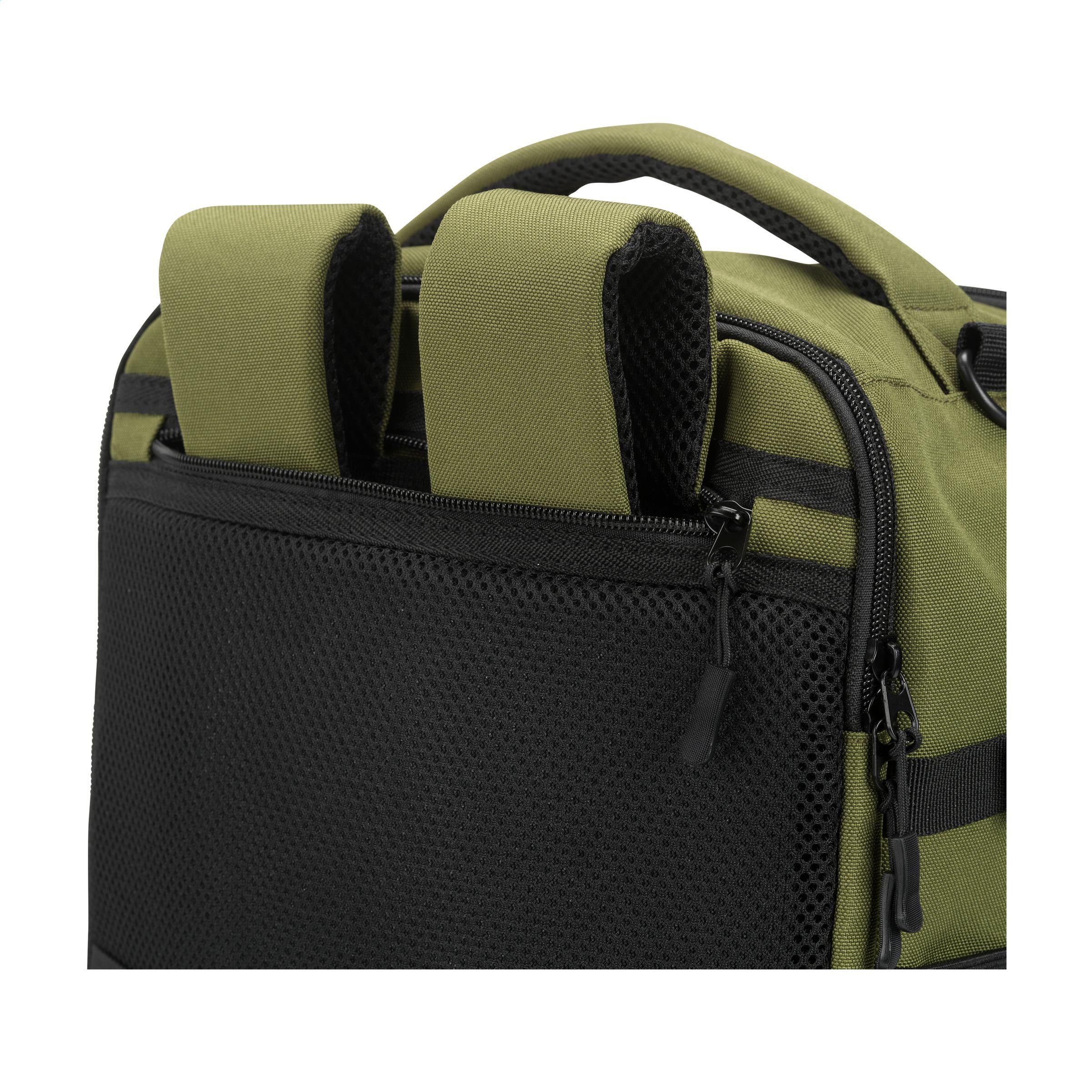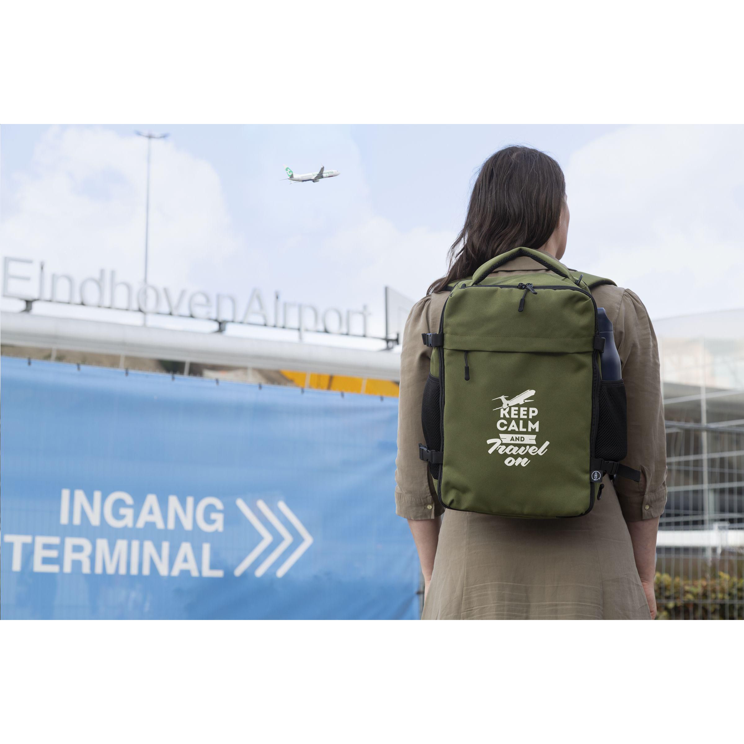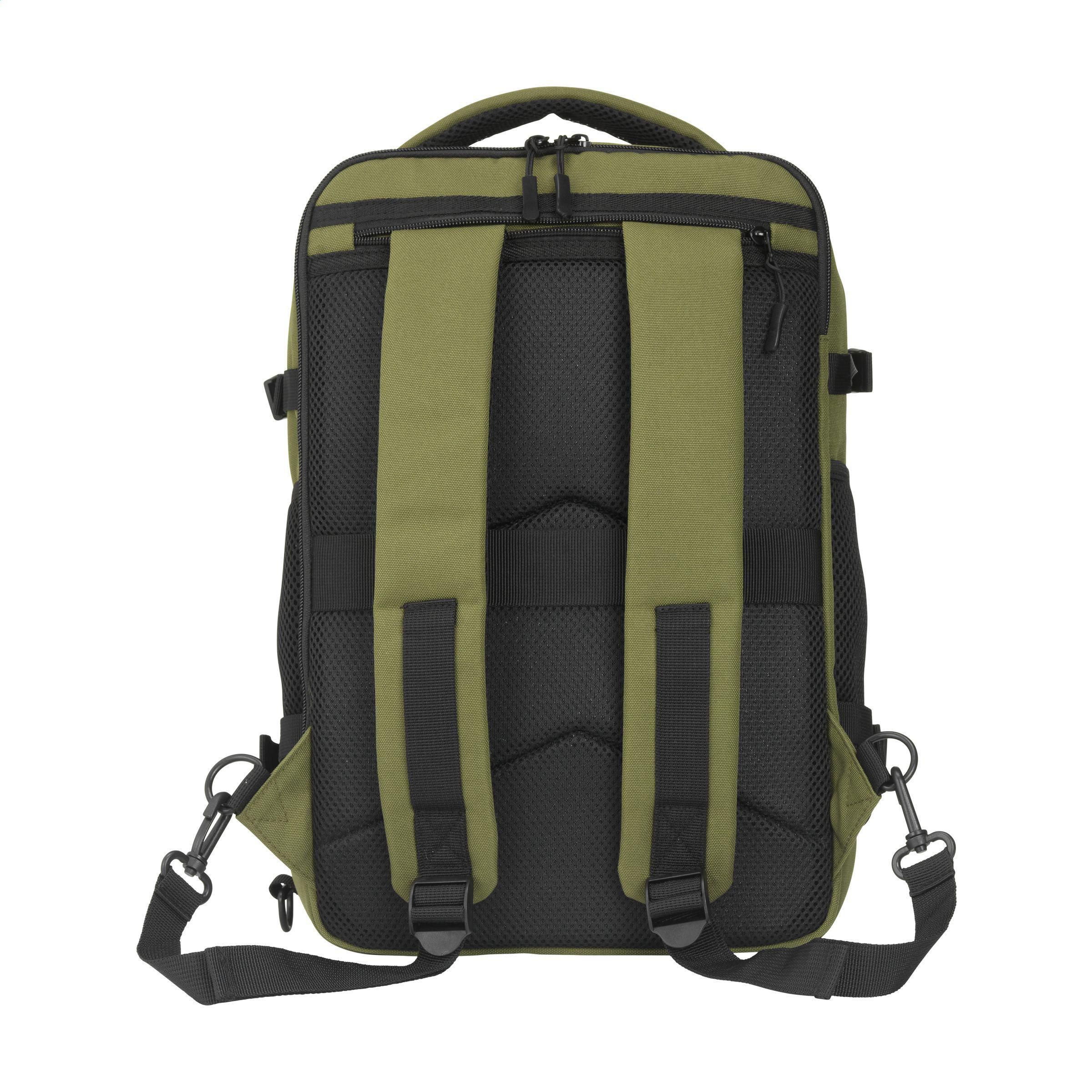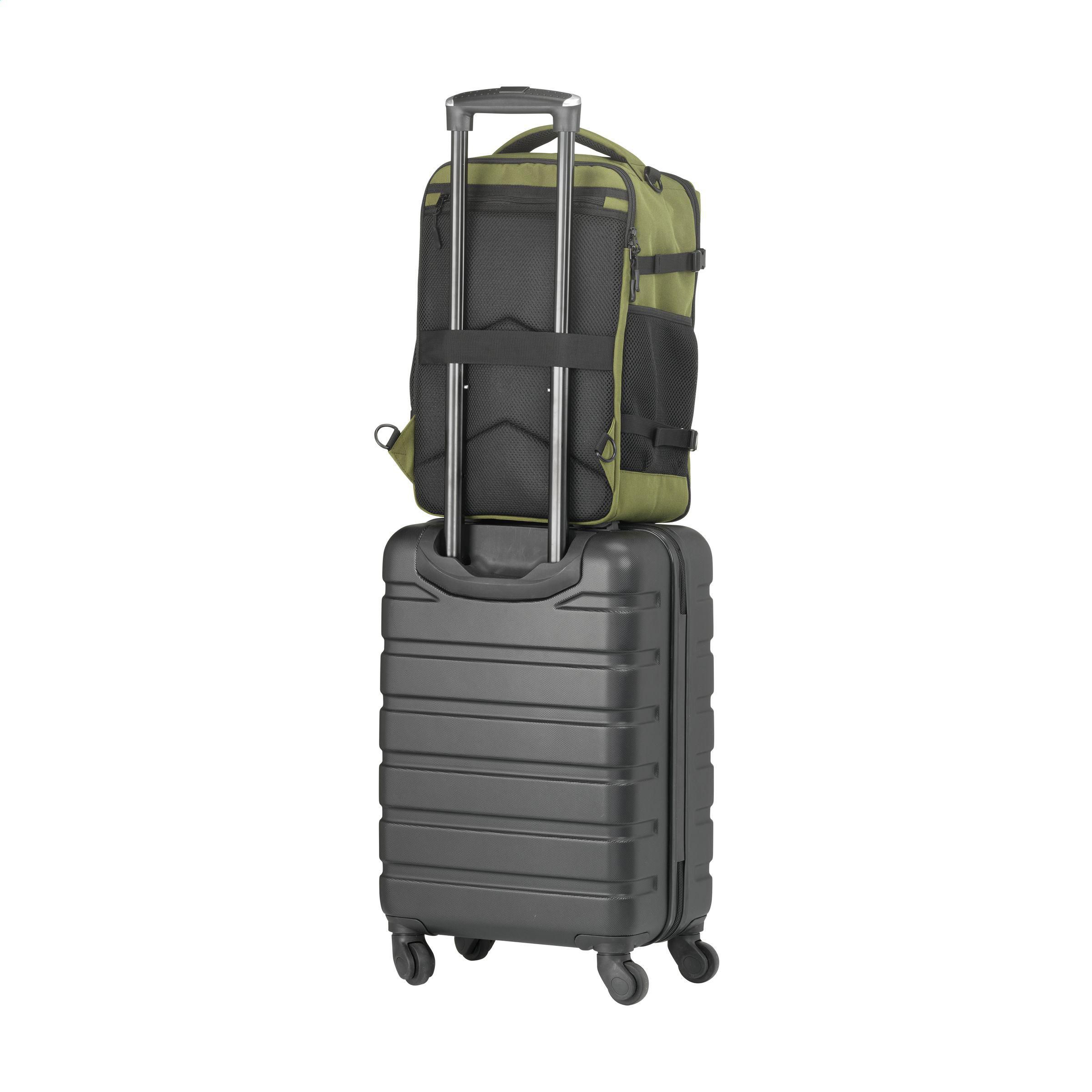 Dieser kompakte und vielseitige Cabin Flight Rucksack wurde als Handgepäck für alle Fluggesellschaften entwickelt. Er passt problemlos unter jeden Flugzeugsitz. Mit einem Fassungsvermögen von ca. 20 Litern bietet der Rucksack überraschend viel Stauraum, während sein geringes Gewicht für hohen Tragekomfort sorgt. Die Außenseite besteht aus robustem recyceltem RPET 900D-Polyester. Komplett gefüttert mit recyceltem RPET 210D-Polyester.Das geräumige Hauptfach mit Reißverschluss und doppelten Schiebern ist ideal für Kleidung und verfügt über einen praktischen Organizer für Telefon, persönliche Dokumente und andere wichtige Dinge. Ein zusätzliches gepolstertes Laptopfach bietet sicheren Schutz für Laptops bis zu 15,6 Zoll. Die Tasche hat auf beiden Seiten elastische Netztaschen, ideal für eine Wasserflasche oder kleine Accessoires. Auf der Rückseite befindet sich ein zusätzliches Reißverschlussfach. Die Schultergurte sind oben in diesem Reißverschlussfach befestigt und unten mit einem Karabinerhaken verschlossen. Durch Lösen der Haken können die Gurte vollständig im Reißverschlussfach verstaut werden, wodurch die Tasche noch kompakter wird.Die verstellbaren, gepolsterten Schultergurte, das gepolsterte Rückenteil und der stabile Griff mit Mesh-Futter sorgen für optimalen Tragekomfort, auch auf längeren Reisen. Inklusive abnehmbarem Schultergurt. Ein integrierter Trolley-Gurt erleichtert das Befestigen des Rucksacks an einem Koffer. Dieser Rucksack ist der perfekte Begleiter für jede Flugreise. GRS-zertifiziert. Gesamtes recyceltes Material: 50%.