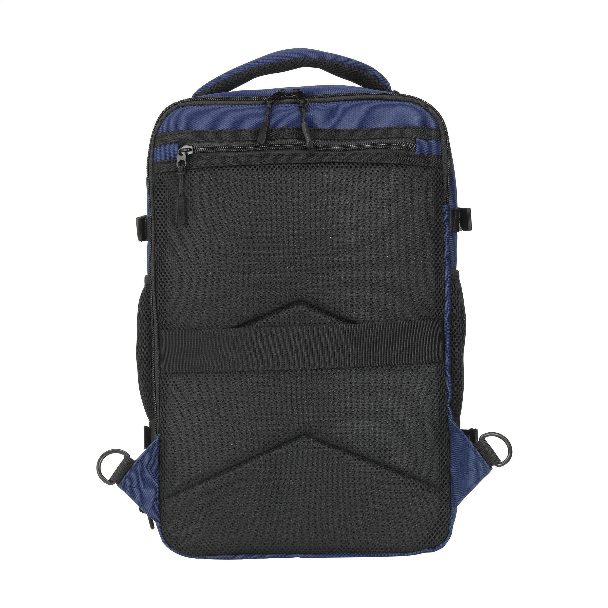 Dieser kompakte und vielseitige Cabin Flight Rucksack wurde als Handgepäck für alle Fluggesellschaften entwickelt. Er passt problemlos unter jeden Flugzeugsitz. Mit einem Fassungsvermögen von ca. 20 Litern bietet der Rucksack überraschend viel Stauraum, während sein geringes Gewicht für hohen Tragekomfort sorgt. Die Außenseite besteht aus robustem recyceltem RPET 900D-Polyester. Komplett gefüttert mit recyceltem RPET 210D-Polyester.Das geräumige Hauptfach mit Reißverschluss und doppelten Schiebern ist ideal für Kleidung und verfügt über einen praktischen Organizer für Telefon, persönliche Dokumente und andere wichtige Dinge. Ein zusätzliches gepolstertes Laptopfach bietet sicheren Schutz für Laptops bis zu 15,6 Zoll. Die Tasche hat auf beiden Seiten elastische Netztaschen, ideal für eine Wasserflasche oder kleine Accessoires. Auf der Rückseite befindet sich ein zusätzliches Reißverschlussfach. Die Schultergurte sind oben in diesem Reißverschlussfach befestigt und unten mit einem Karabinerhaken verschlossen. Durch Lösen der Haken können die Gurte vollständig im Reißverschlussfach verstaut werden, wodurch die Tasche noch kompakter wird.Die verstellbaren, gepolsterten Schultergurte, das gepolsterte Rückenteil und der stabile Griff mit Mesh-Futter sorgen für optimalen Tragekomfort, auch auf längeren Reisen. Inklusive abnehmbarem Schultergurt. Ein integrierter Trolley-Gurt erleichtert das Befestigen des Rucksacks an einem Koffer. Dieser Rucksack ist der perfekte Begleiter für jede Flugreise. GRS-zertifiziert. Gesamtes recyceltes Material: 50%.