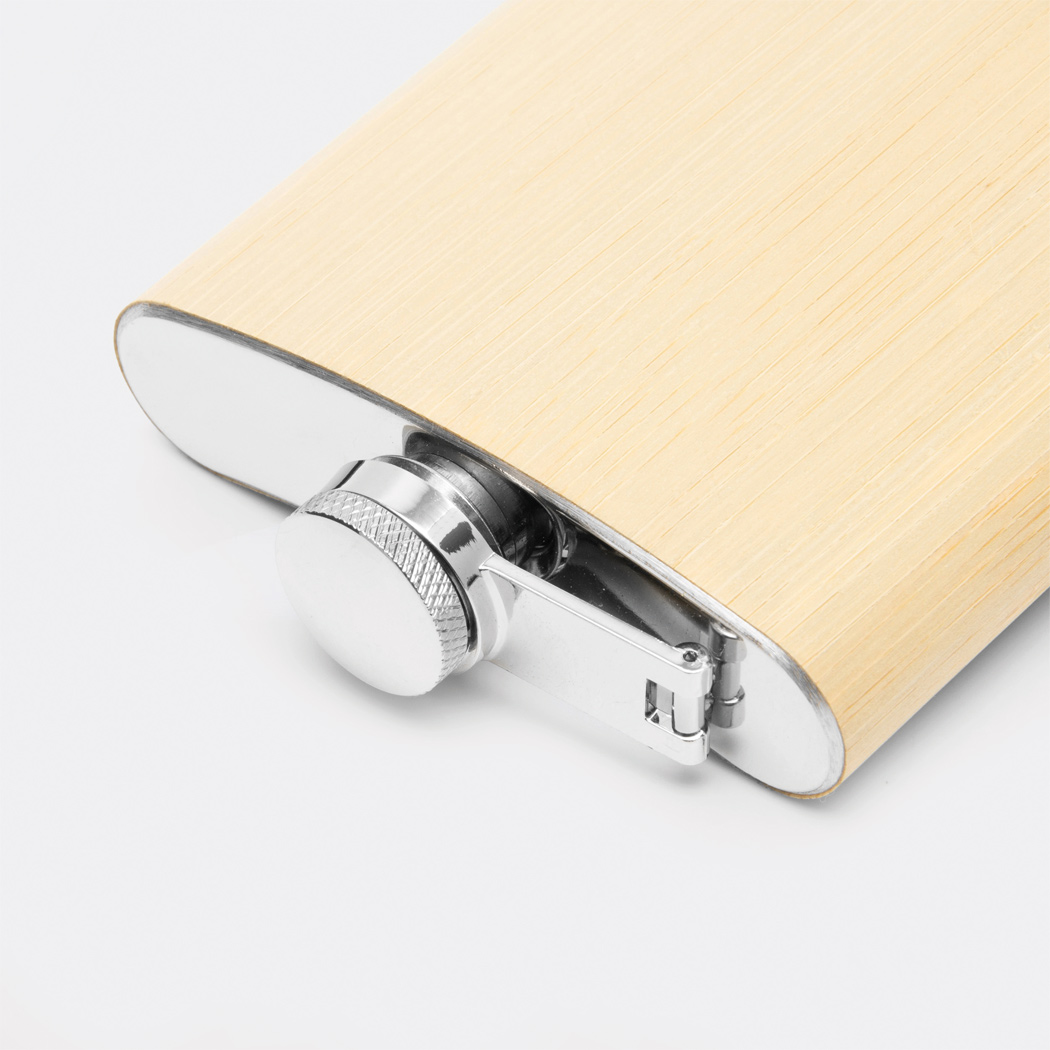 Flachmann BAMBOO STYLE: aus Edelstahl mit Bambus-Ummantelung, mit Schraubverschluss, Füllmenge ca. 175 ml, in Box