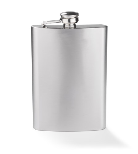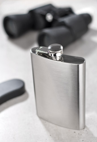 Flachmann 240ml aus Edelstahl mit einem sicheren Verschluss. Das Logo wird auf der Fläche per Laser graviert