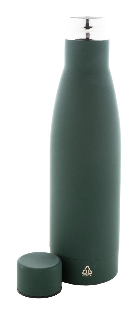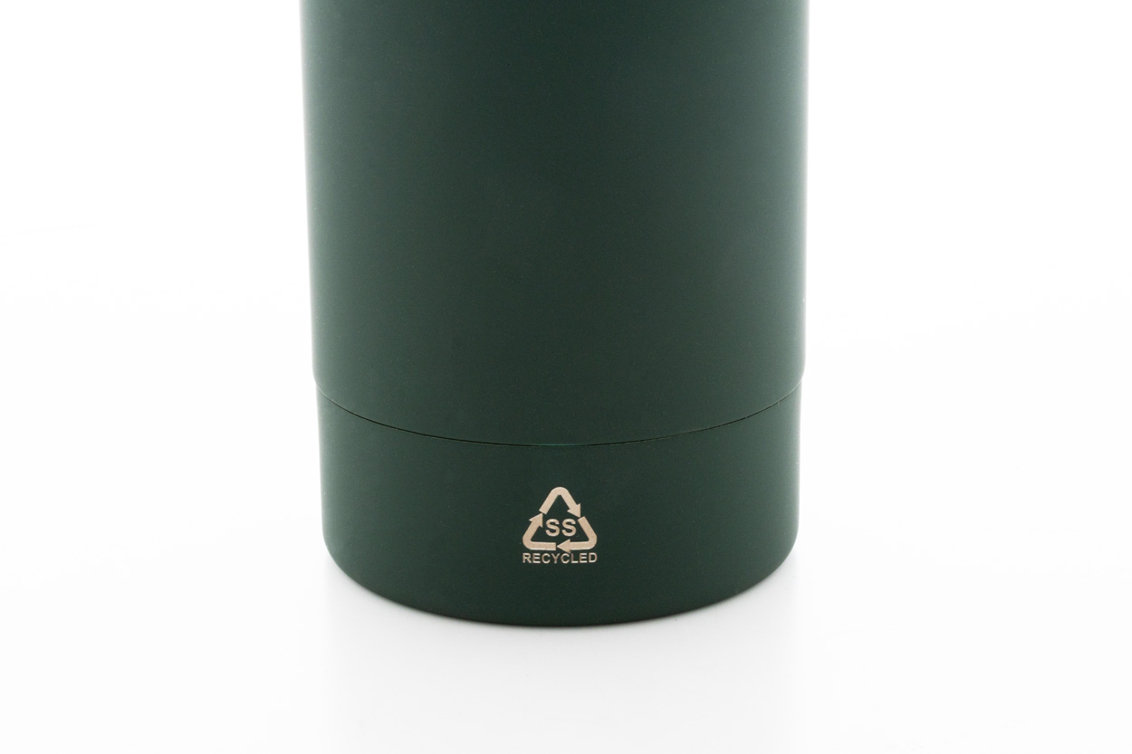 Recycelte Edelstahlflasche mit gummierter Oberfläche. Füllmenge: 750 ml.