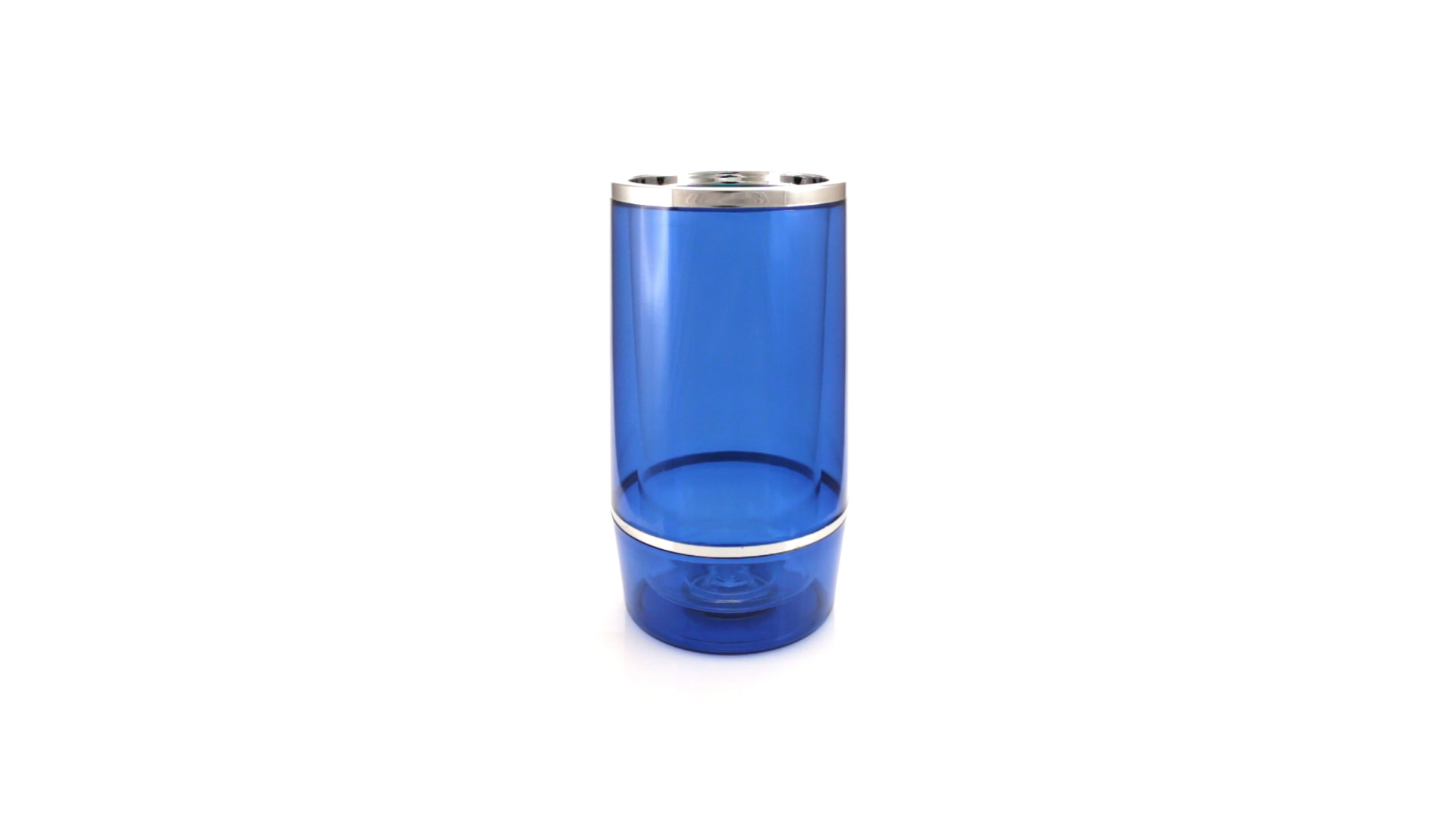 Flaschenkühler für (Wein-)Flaschen bis 750 ml in origineller transparenter Ausführung und verschiedenen Farben. Doppelwandig und mit Ringen in glänzendem Silber. Präsentiert in einer individuellen Box.