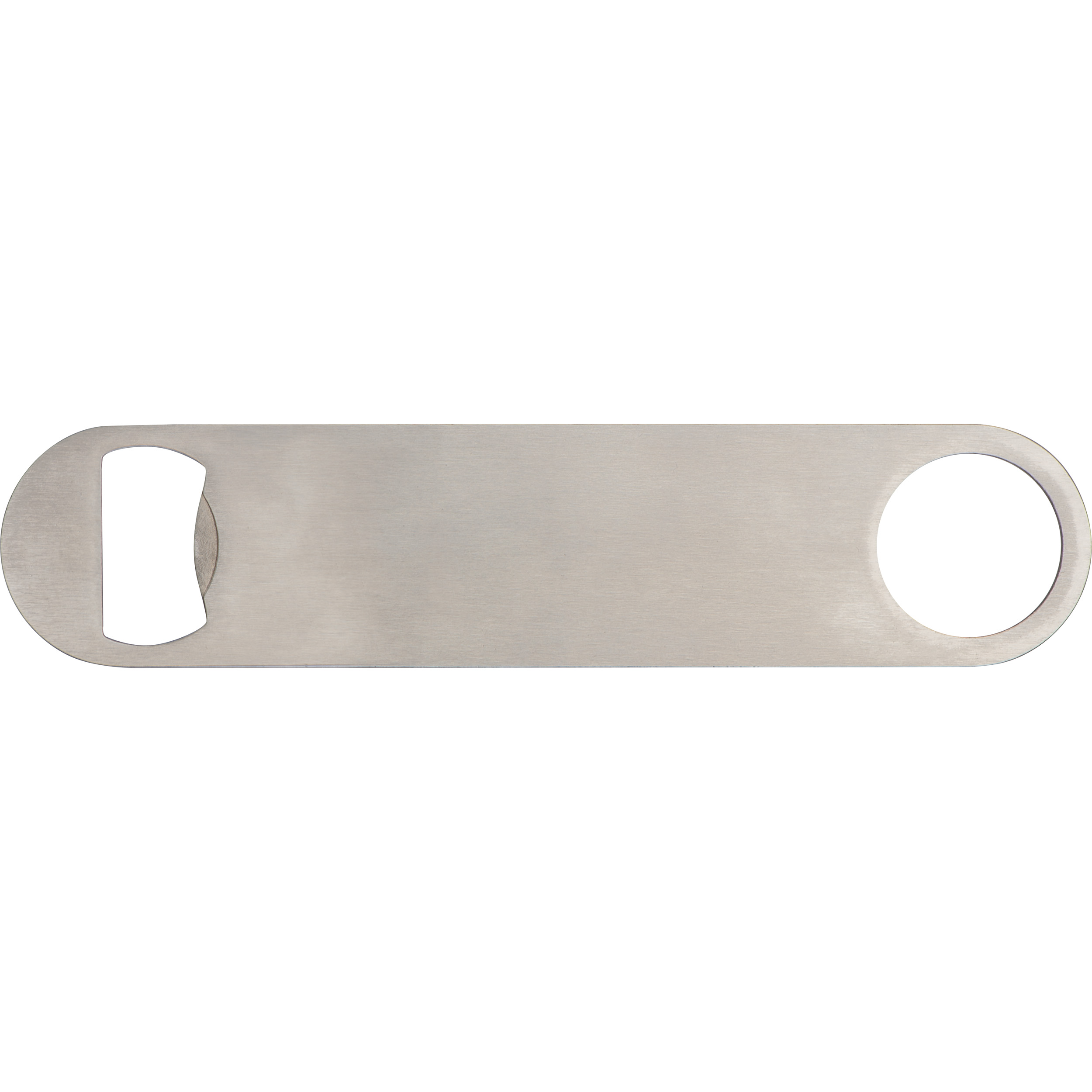 Großer, robuster Flaschenöffner aus gebürstetem Edelstahl. Ihre Werbung wird auf dem Öffner graviert.