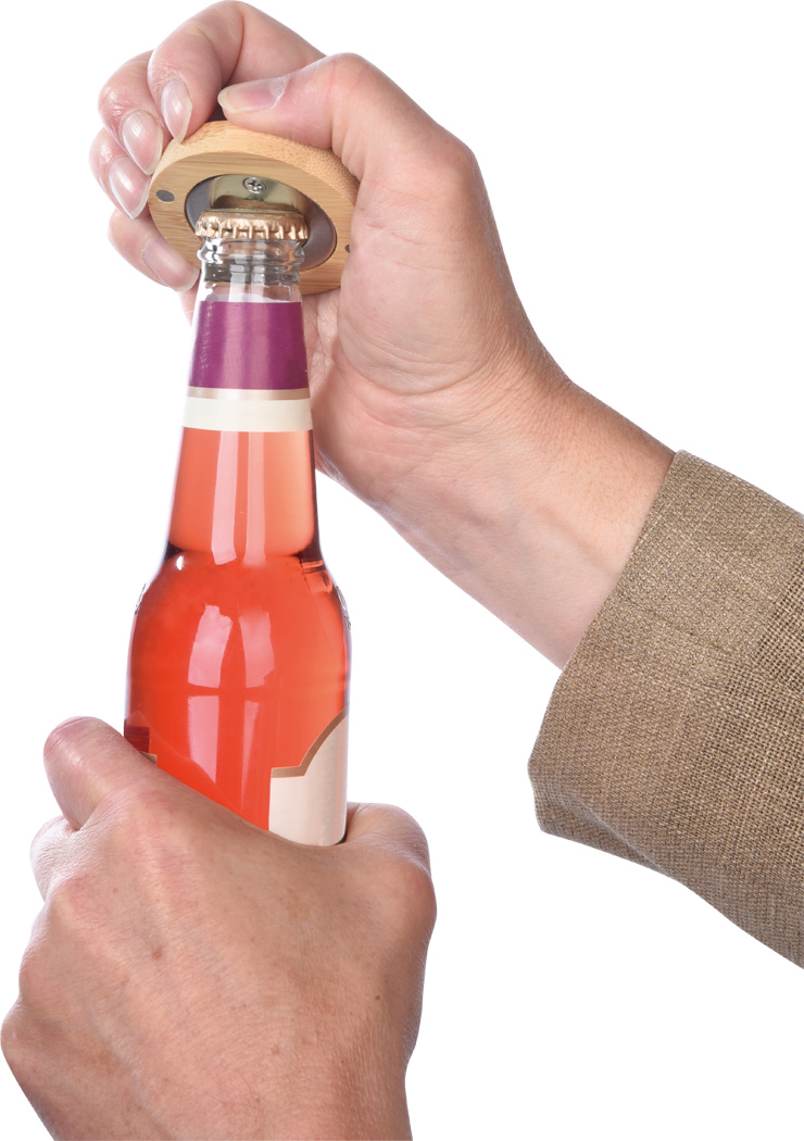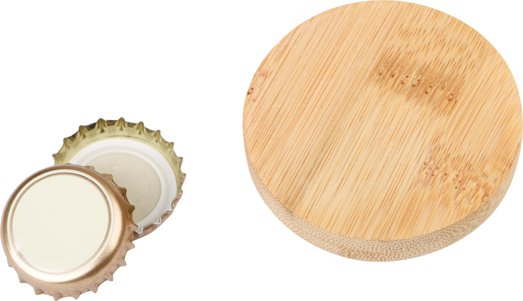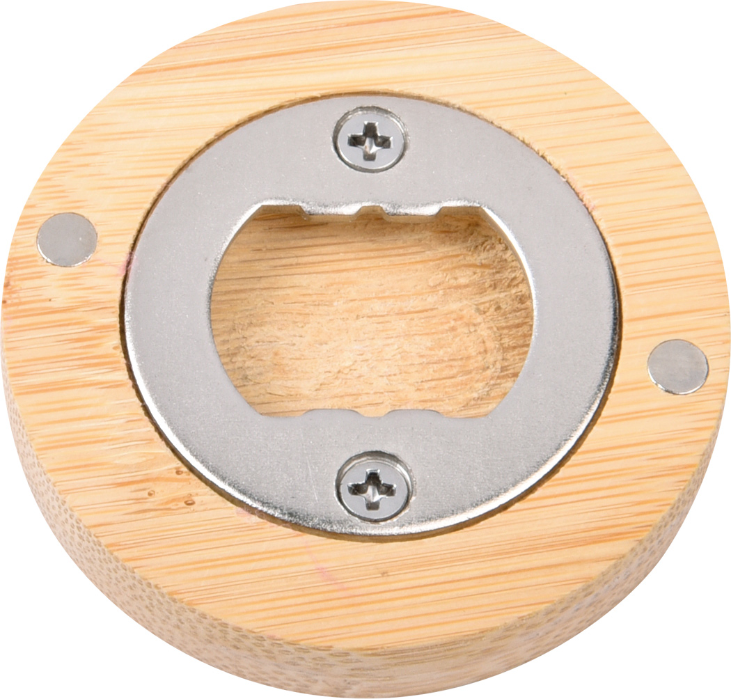 Flaschenöffner BAMBOO COIN: mit zwei magnetischen Punkten zur Befestigung z. B. am Kühlschrank