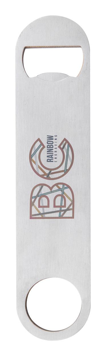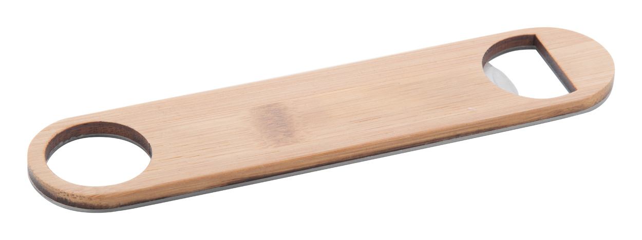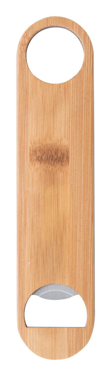 Flaschenöffner aus Edelstahl mit Bambusmantel.
