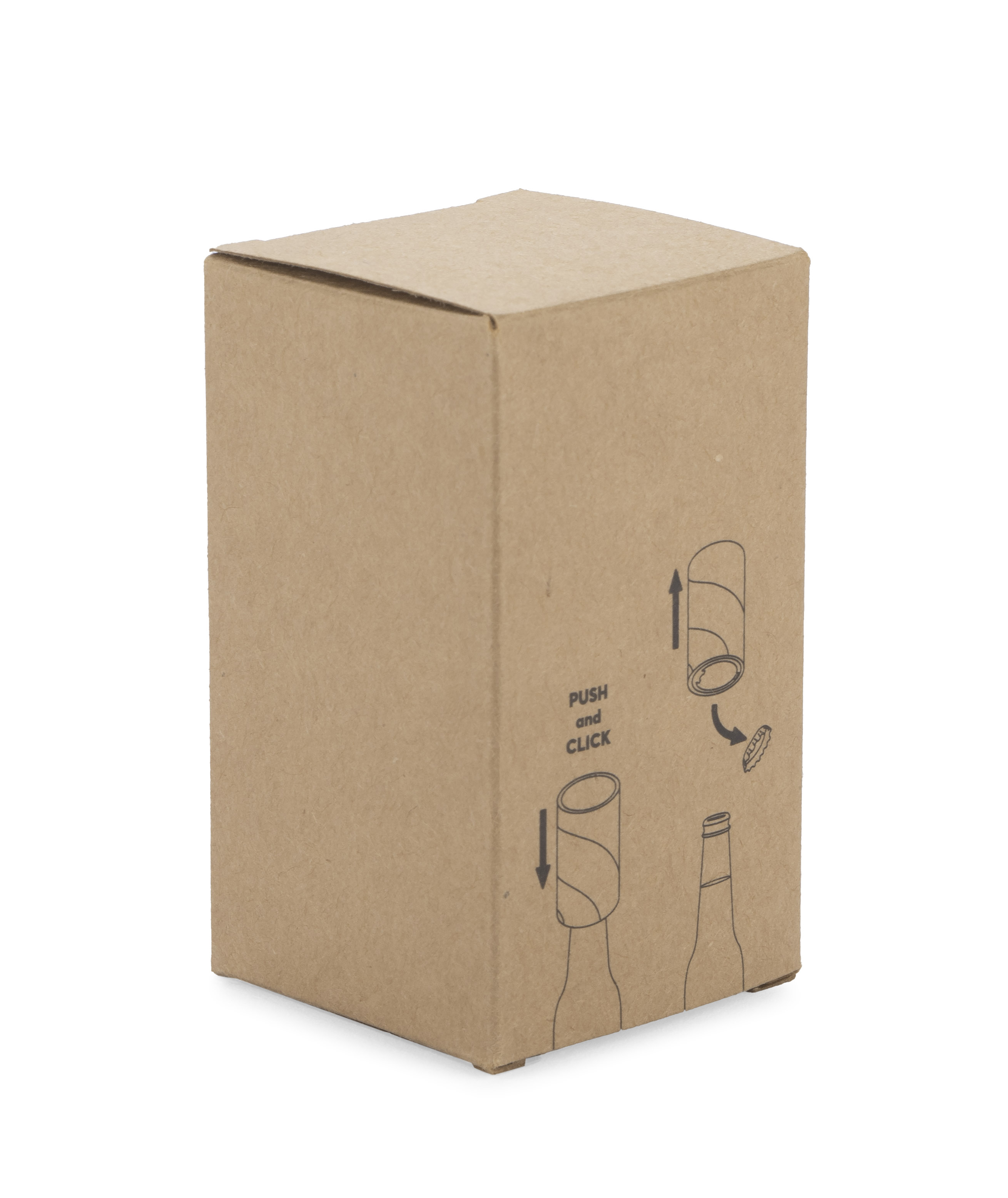 Flaschenöffner KOL aus haltbarem ABS-Kunststoff. Ermöglicht das einfache Öffnen einer Flasche mit einem Verschluss. Verpackt in einer Pappschachtel aus Kraftpapier. Enthält eine Infografik mit Vorschlägen zur Anwendung des Produkts.