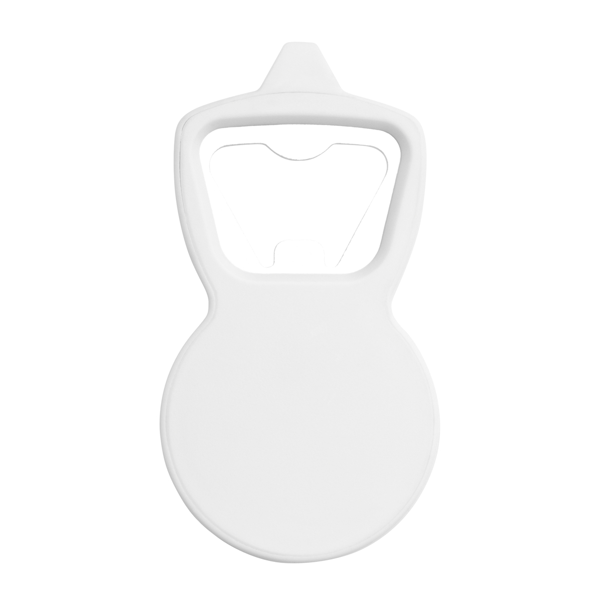Kunststoff, Metall, PU-Schaumstoff, gelb, weiß, Flaschenöffner, Polybeutel