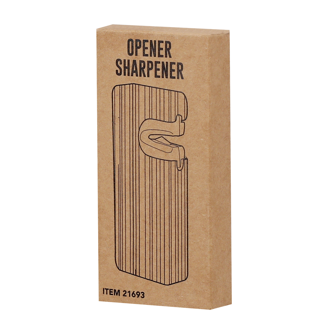Praktischer 2-in-1 Flaschenöffner und Schärfer, hergestellt aus Bambus. Inklusive integriertem Messerschärfer, Flaschenöffner und Magnet.