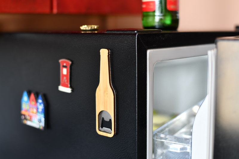 VILO ist ein Flaschenöffner, der auf der einen Seite aus Bambus und auf der anderen Seite aus gebürstetem Metall besteht und zwei eingebaute Magnete hat. Auf diese Weise können Sie ihn einfach an Ihrem Kühlschrank befestigen und haben ihn immer zur Hand. Ein einfaches, aber geniales Gadget für die Bier- und Lebensmittelindustrie und ein praktisches Urlaubsmitbringsel.