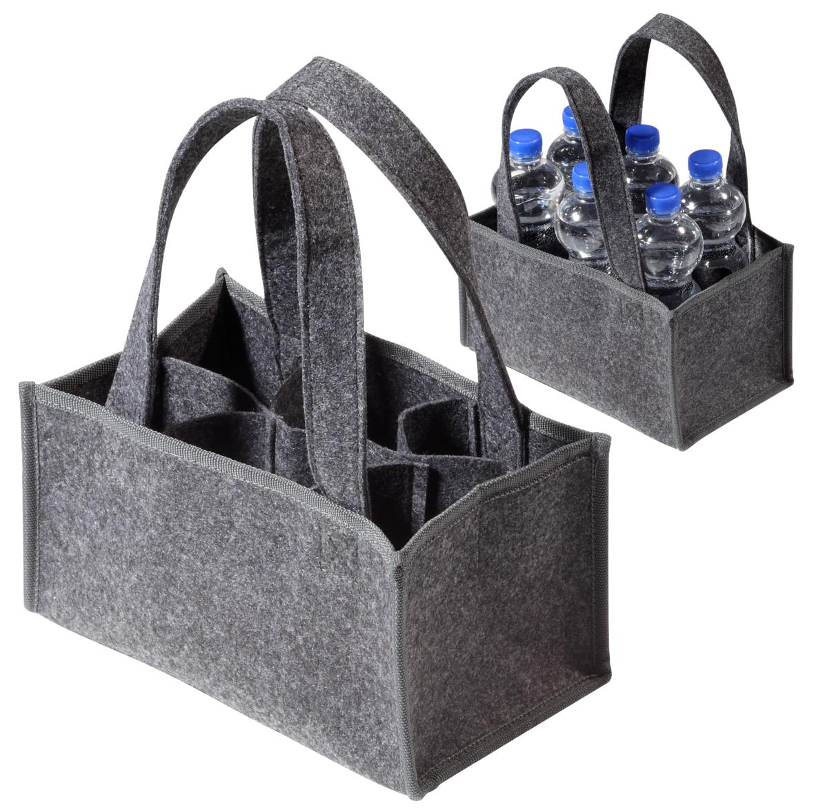 Stabile Getränketasche aus recyceltem Polyesterfilz: Hier lassen sich bis zu 6 Trinkflaschen (jeweils max. 0,70 Liter) sicher verstauen. Die Trennwände verhindern lästiges Klirren und schützen die Getränkeflaschen vor Beschädigung. Inklusive breitem Henkel für einfachen und bequemen Transport.