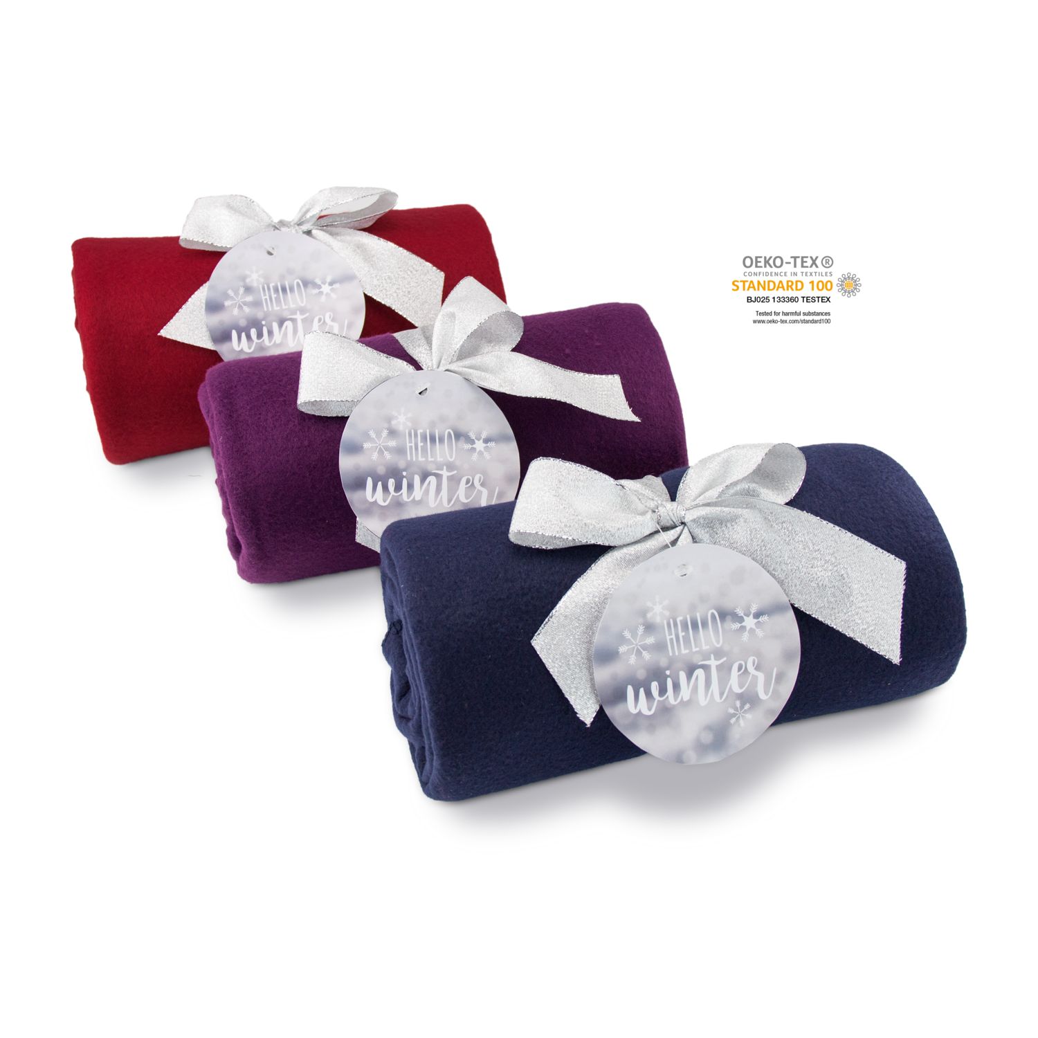 Die Universaldecke in Größe 120 x 150 cm für jeden Einsatz, aus 100% Polyester-Fleece, rundum gekettelt, einzeln im Polybeutel verpackt, schwarzer Kordelzugbeutel liegt bei. Mit silberner Schleife und winterlich bedrucktem Geschenkanhänger. Erhältlich in verschiedenen Farben! Qualität: 180 g / m² (Zertifiziert nach STANDARD 100 von OEKO-TEX®)