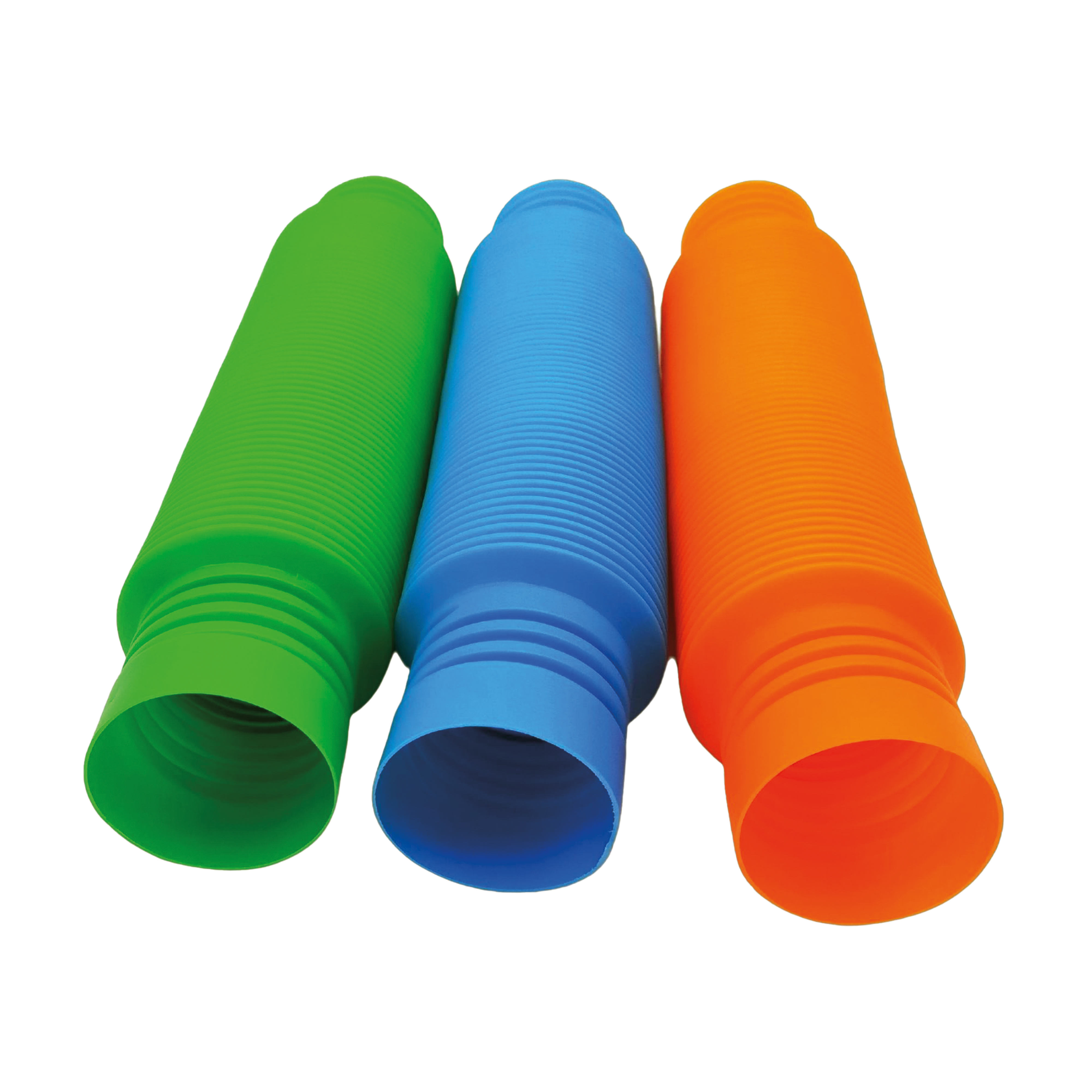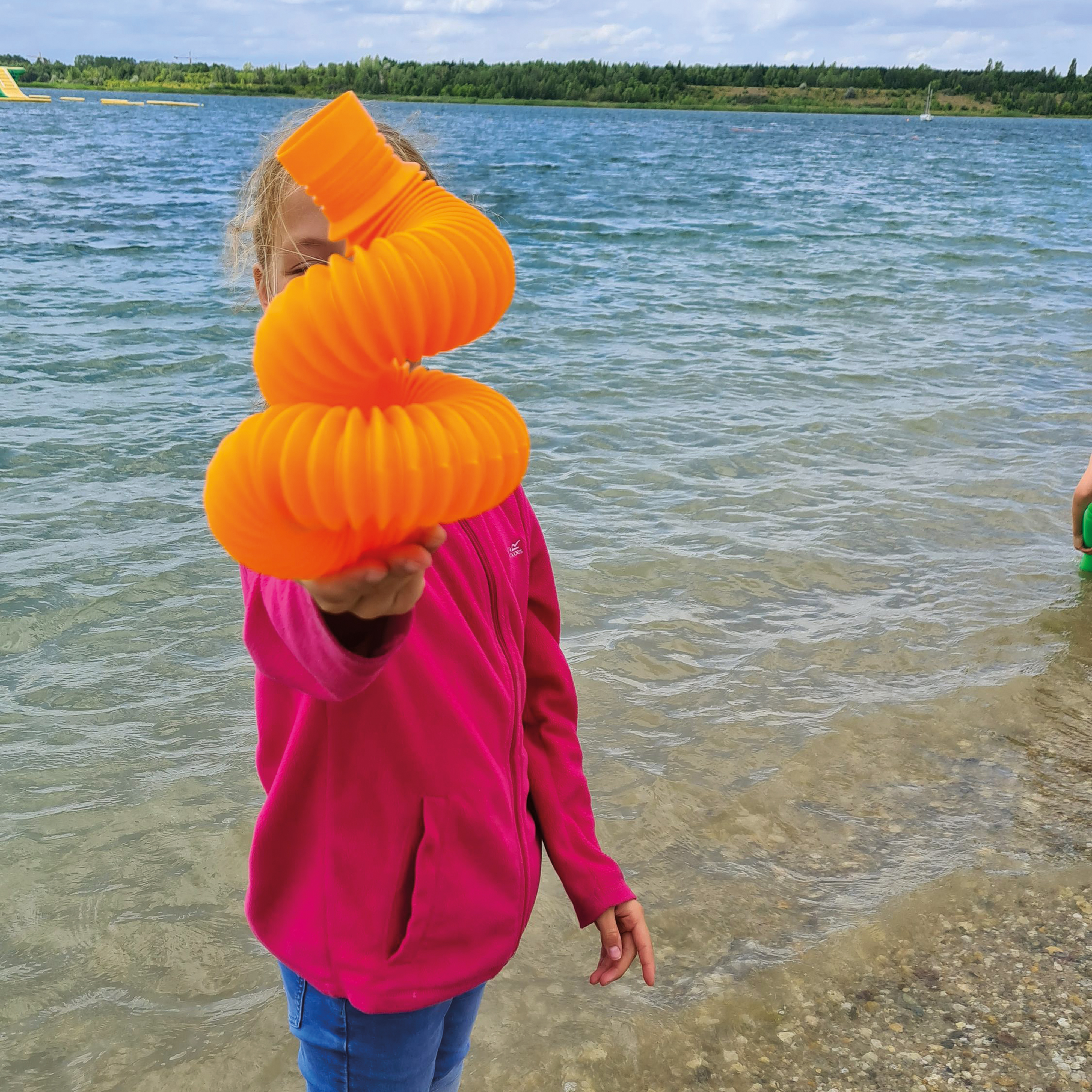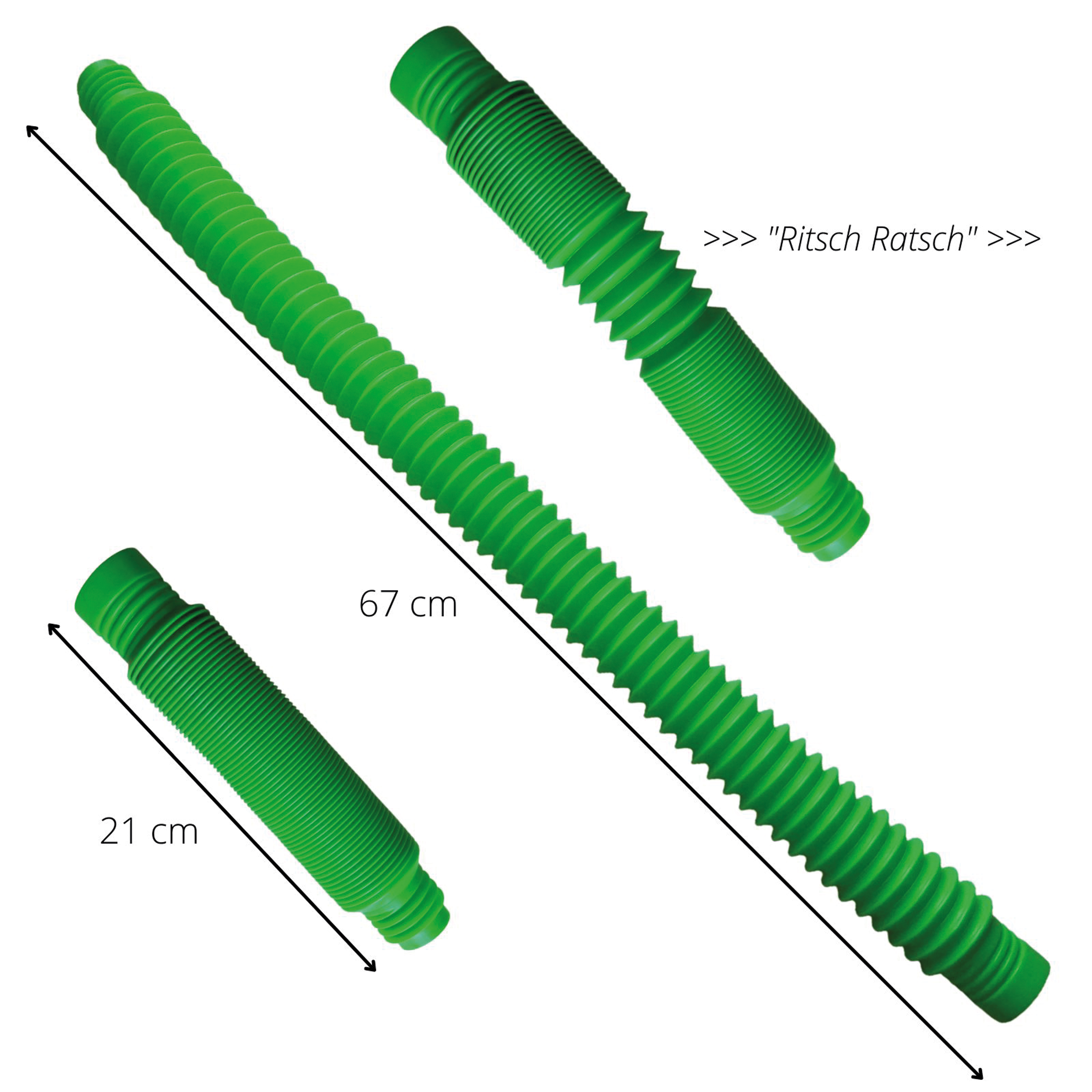 Dieses Set besteht aus 3 ausziehbaren, flexiblen Stretchrohren mit einem Durchmesser von 4,5cm. Die einzelnen Röhren sind je 21cm lang und lassen sich per Steckverschluß kinderleicht miteinander verbinden. Im ausgezogenen Zustand sind die einzelnen Röhren bis zu 67cm lang. Geeignet zum Bauen von Kugelbahnen, Wasserleitungen, Hoop-Reifen und vieles mehr.