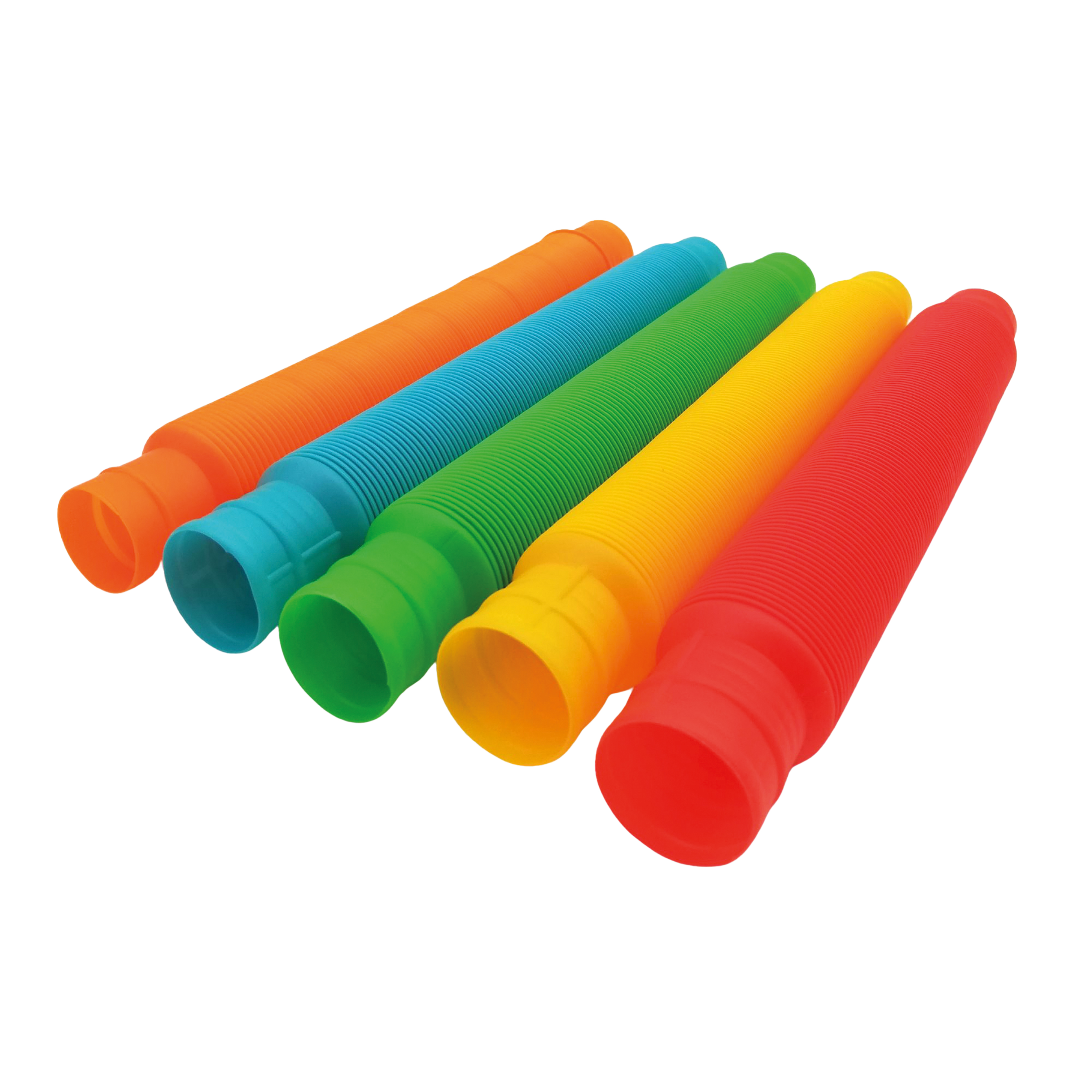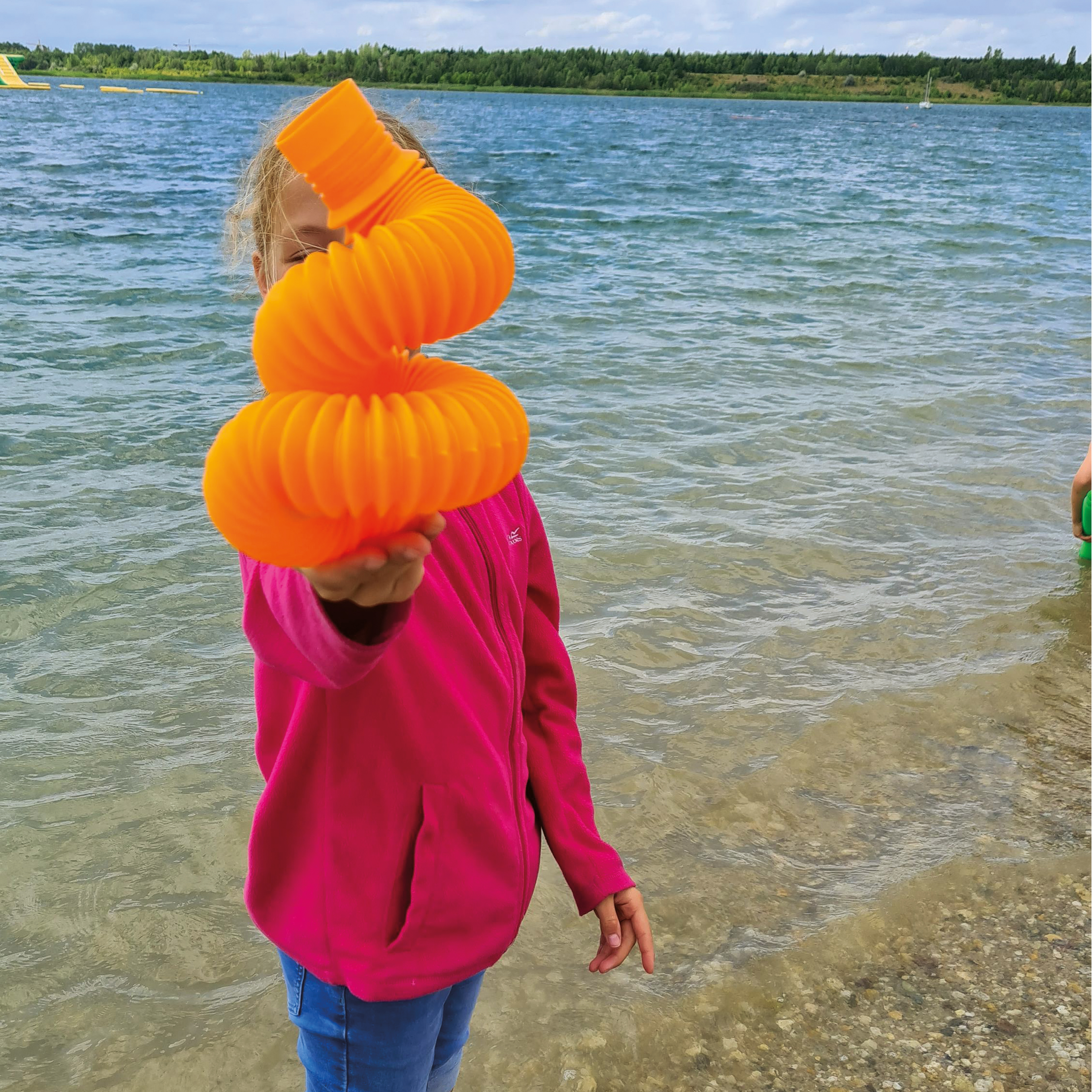 Dieses Set besteht aus 5 ausziehbaren, flexiblen Stretchrohren mit einem Durchmesser von 3cm. Die einzelnen Röhren sind je 21cm lang und lassen sich per Steckverschluß kinderleicht miteinander verbinden. Im ausgezogenen Zustand sind die einzelnen Röhren bis zu 73cm lang. Geeignet zum Bauen von Kugelbahnen, Wasserleitungen, Hoop-Reifen und vieles mehr.