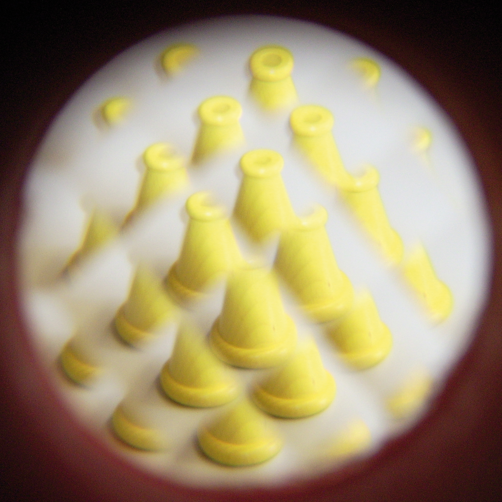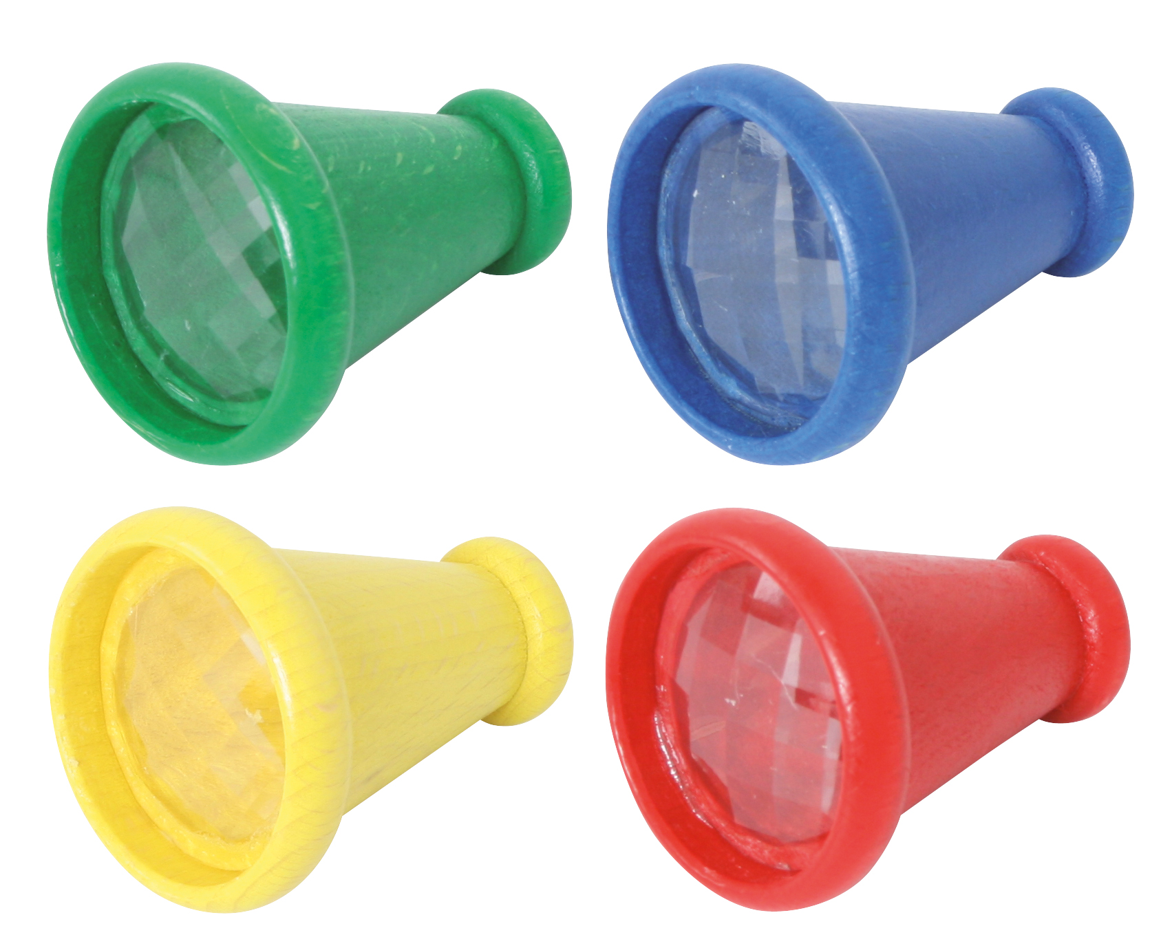 In vielen kleinen Facetten spiegelt das Auge die Eindrücke aus der Umwelt wider. Verschiedene Farben sortiert.