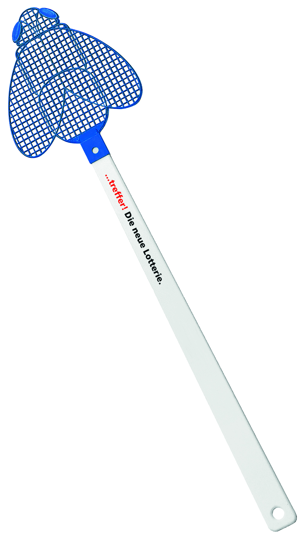 Fliegenklatsche "Brummi" Griff mit praktischer Öse zum Aufhängen, Griff und Klatsche farblich kombinierbar. Farbkombinationen möglich.