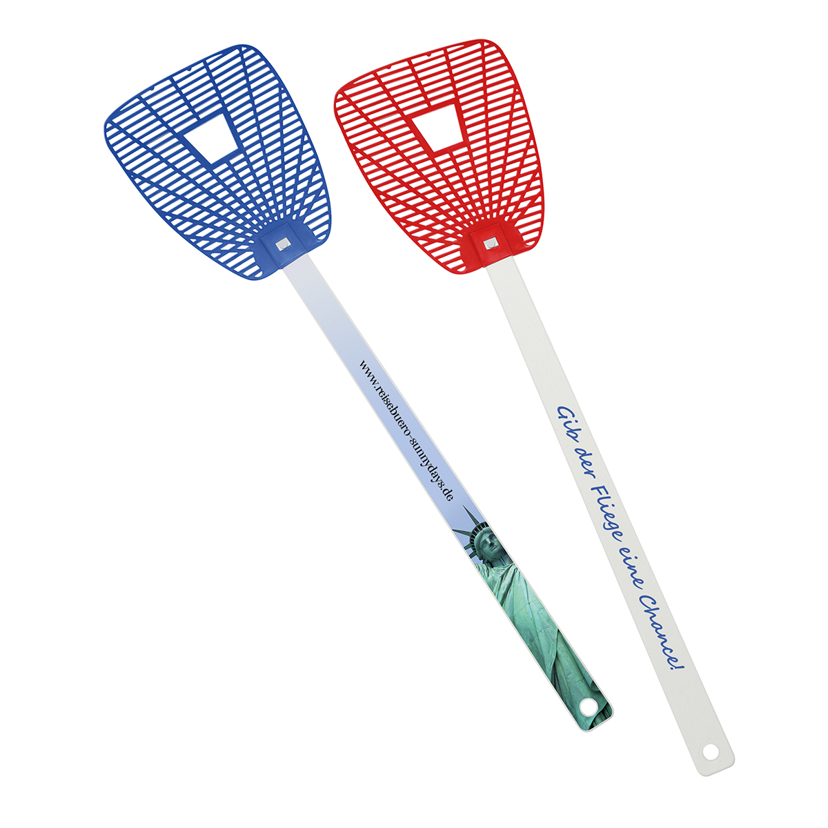 Fliegenklatsche "Fluchtloch" ein Klassiker unter den Werbeartikeln, Griff mit praktischer Öse zum Aufhängen