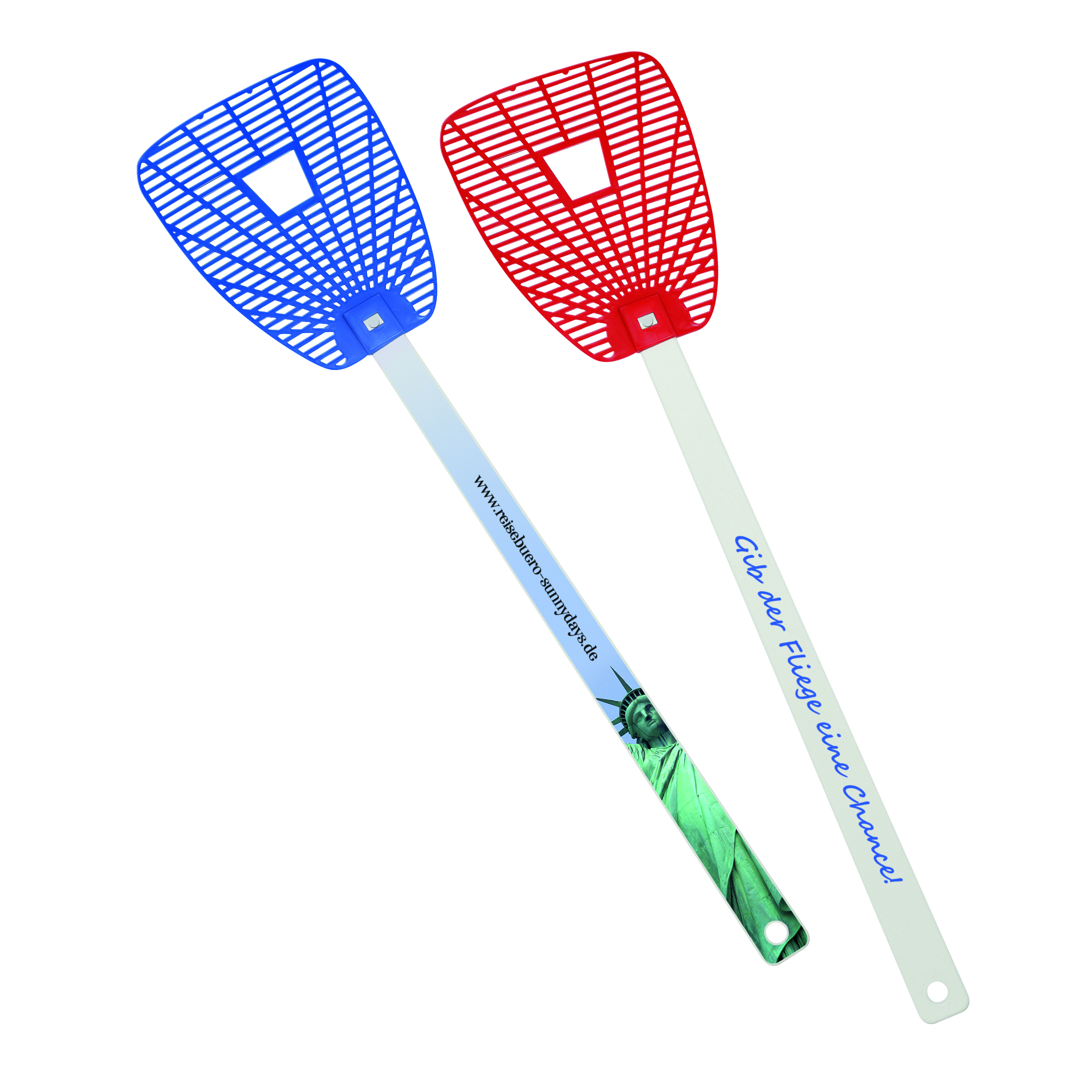 Fliegenklatsche "Fluchtloch" besonders für Fans ein "must-have", Griff mit praktischer Öse zum Aufhängen, Griff und Klatsche farblich kombinierbar